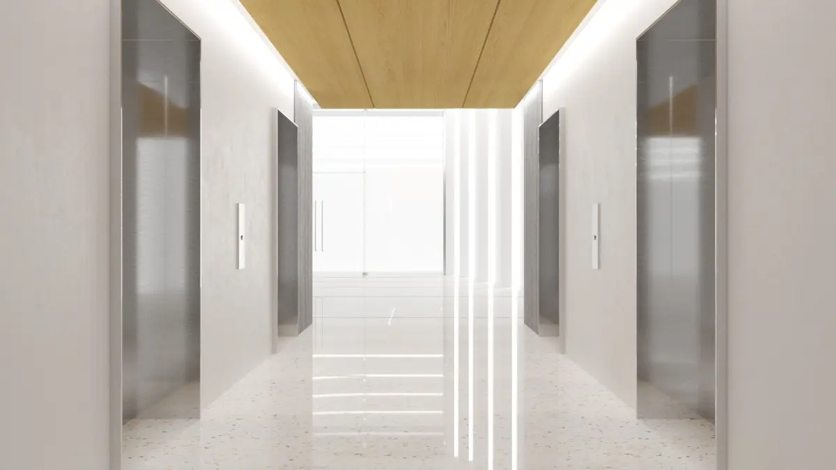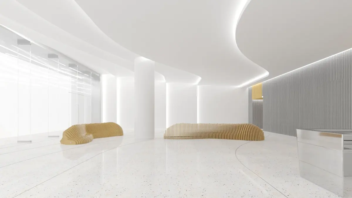 Contemporary lobby in business center.