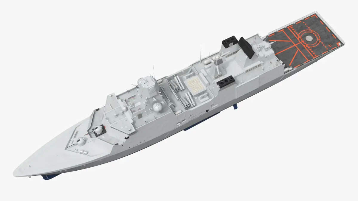 This futuristic frigate features a sleek, stealthy design with advanced radar systems, weaponry, and communication equipment. It is equipped with guided missile launchers, anti-aircraft guns, and torpedo tubes. The vessel's multi-role capabilities make it a vital asset in naval defense strategies, with reinforced hulls for durability in challenging maritime environments.