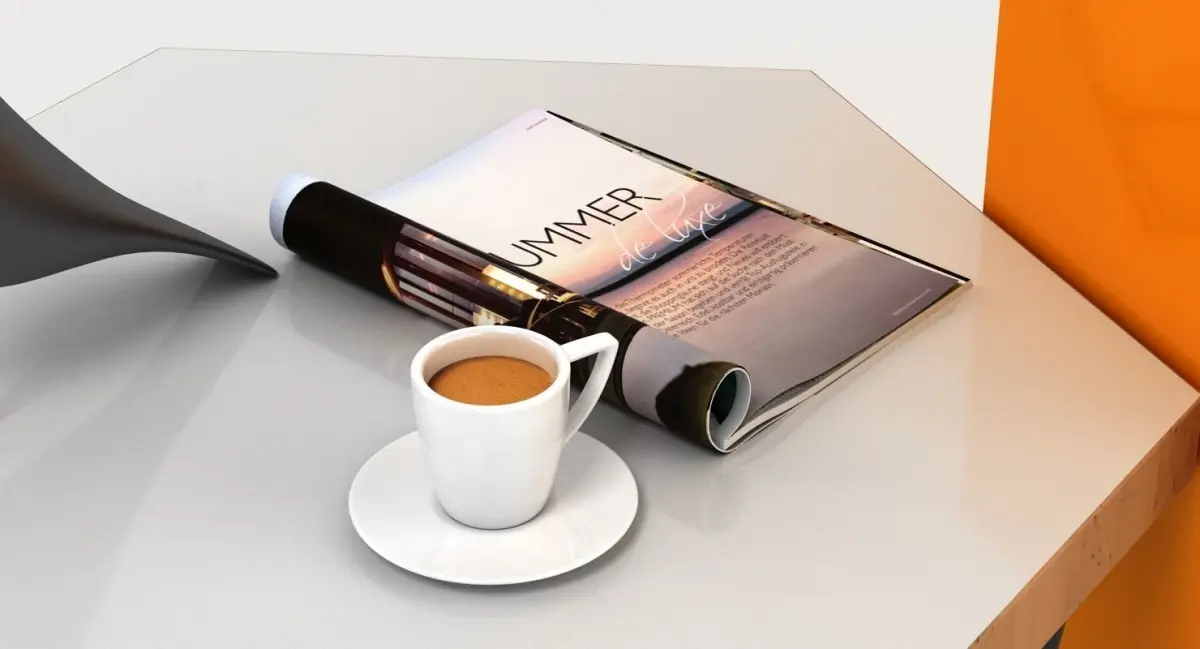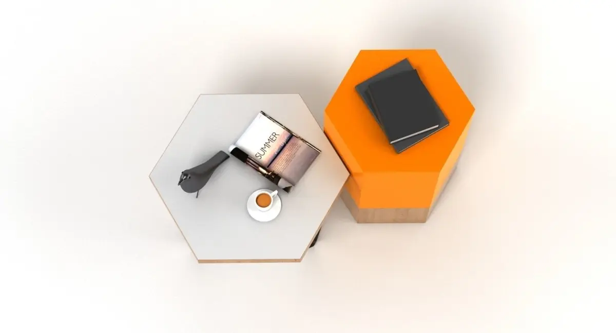 A DETAILED 3D MODEL OF A CONTEMPORARY SIDE TABLE SCENE;