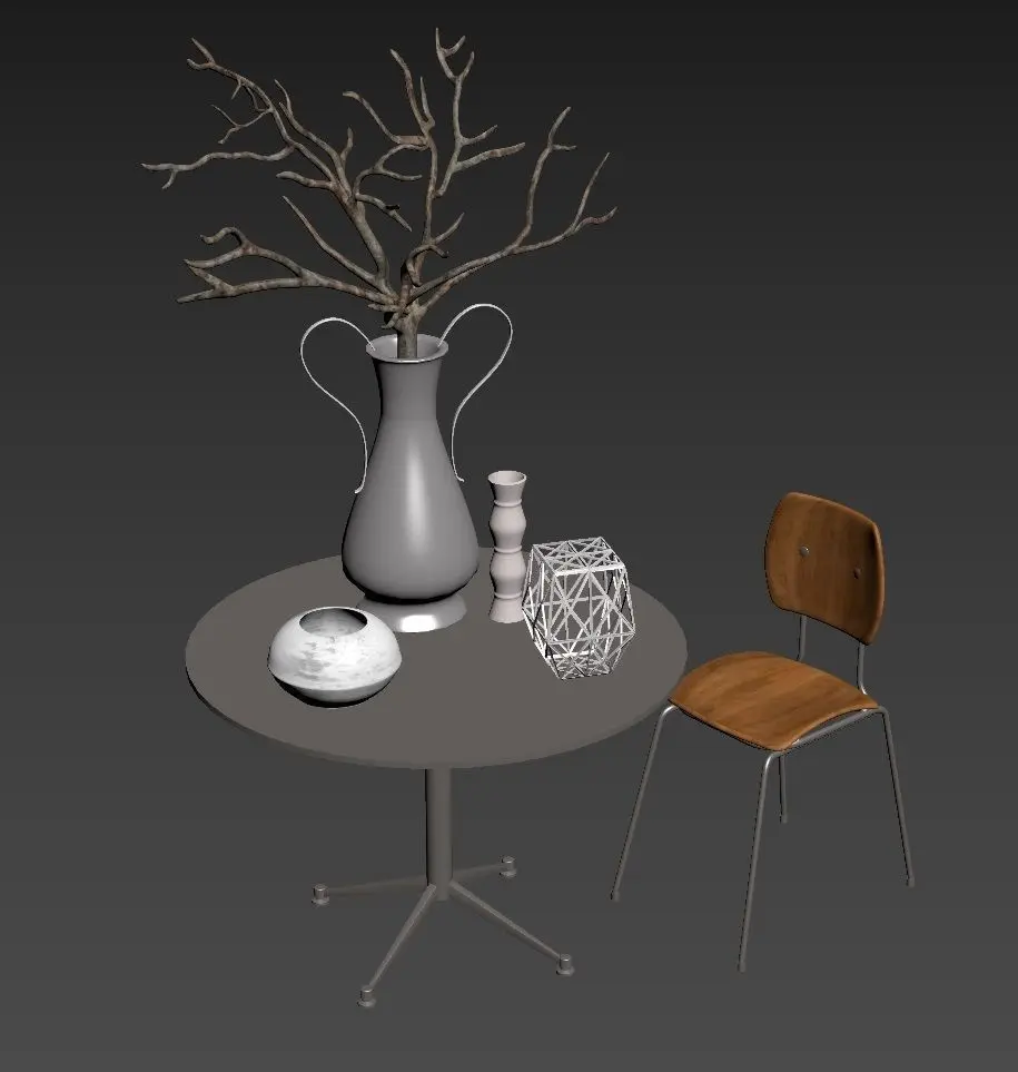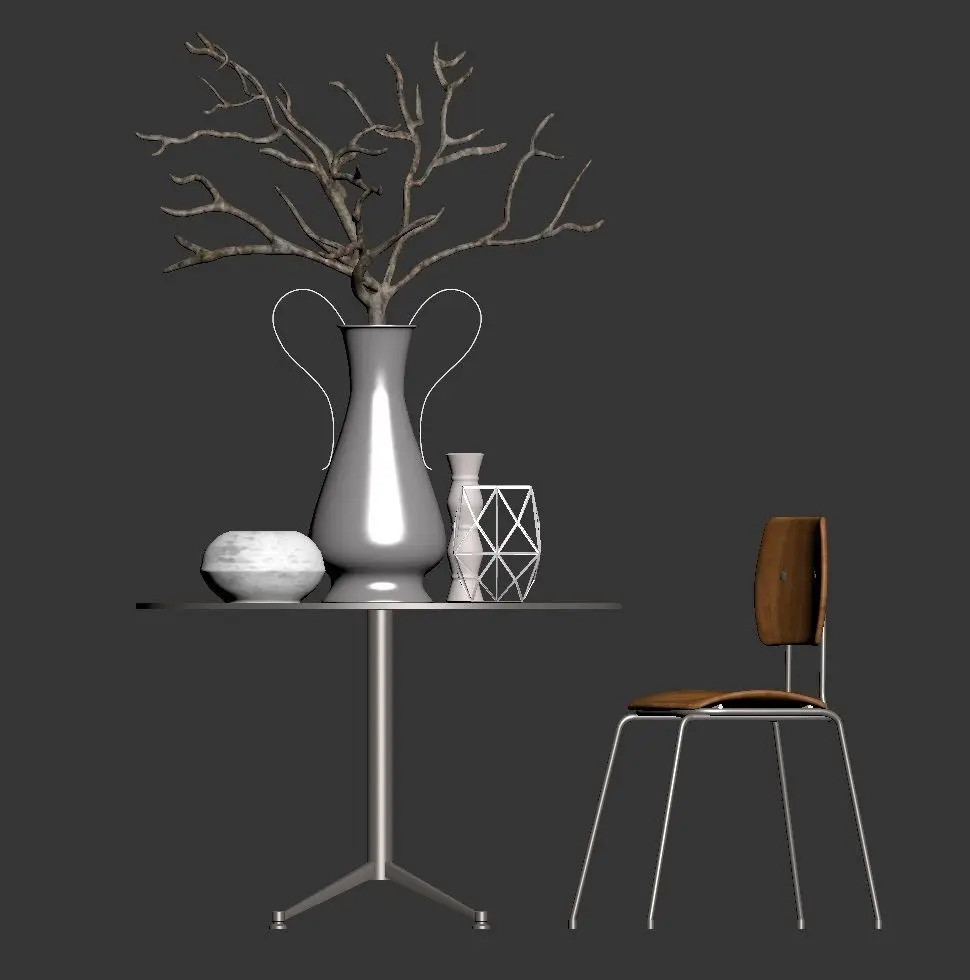 The model includes a modern chair and table that houses props and a planter. I created the model in 3D Studio Max and rendered in Corona. Lighting higherachy was made simple by corona to create a moody and chic scene.