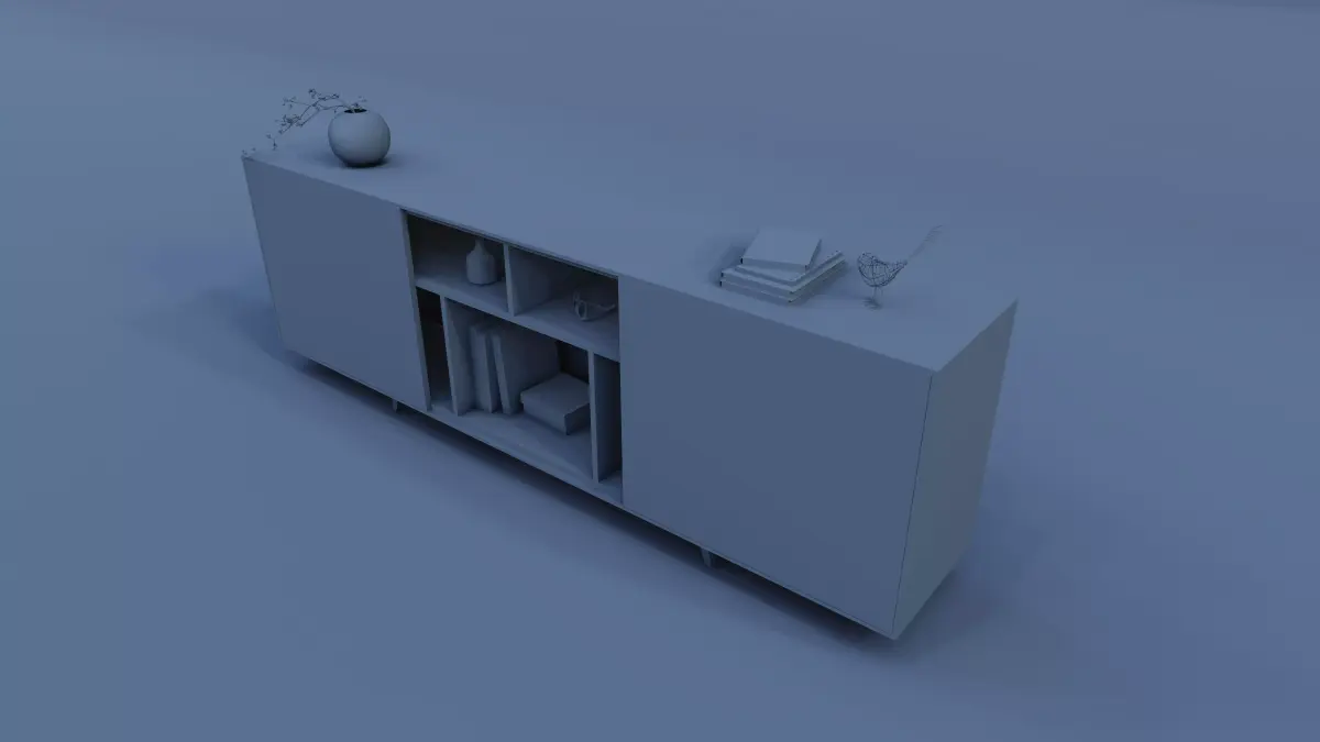 Elevate your interior design projects with this sophisticated 3D model of a modern media cabinet. This meticulously crafted console offers a perfect blend of contemporary style and functional storage, making it ideal for high-end residential living rooms, offices, or commercial spaces.