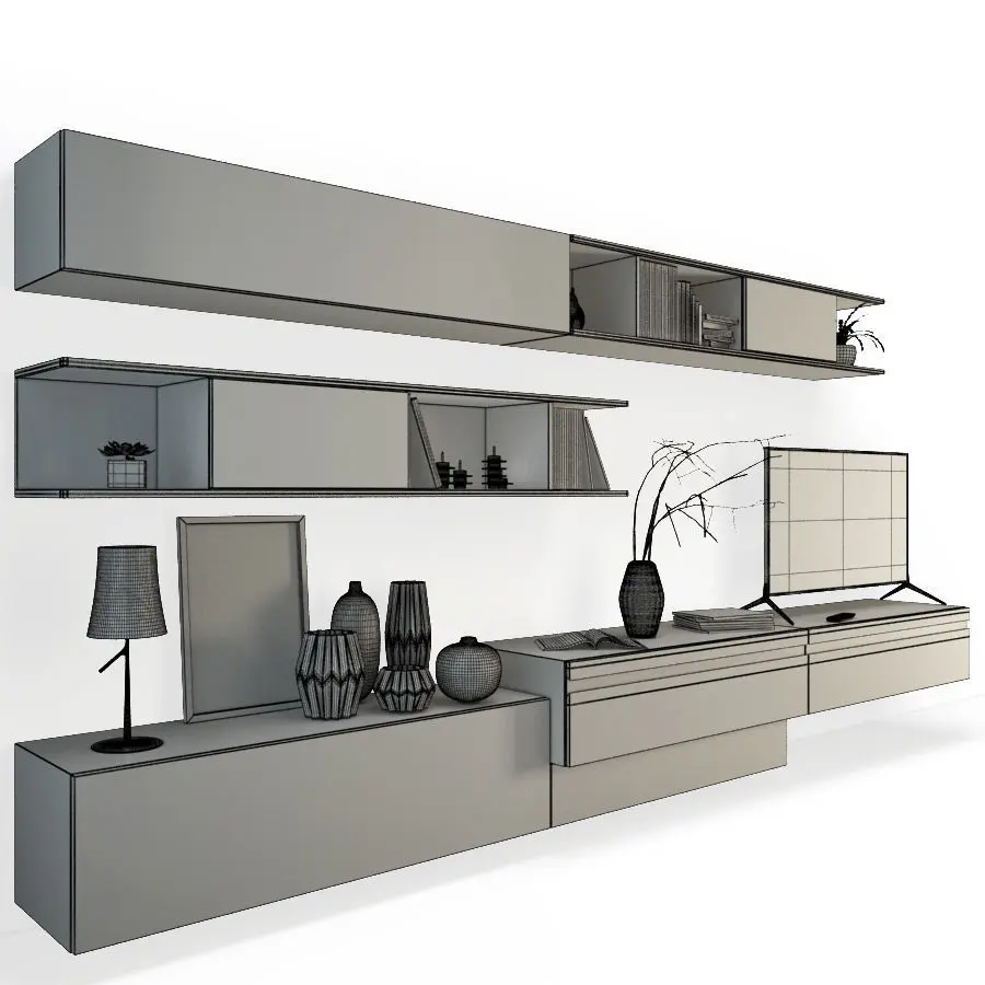 All books, magazines, plants and other decorative elements are included in the 3d model.