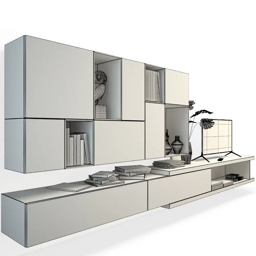All books, magazines, plants and other decorative elements are included in the 3d model.