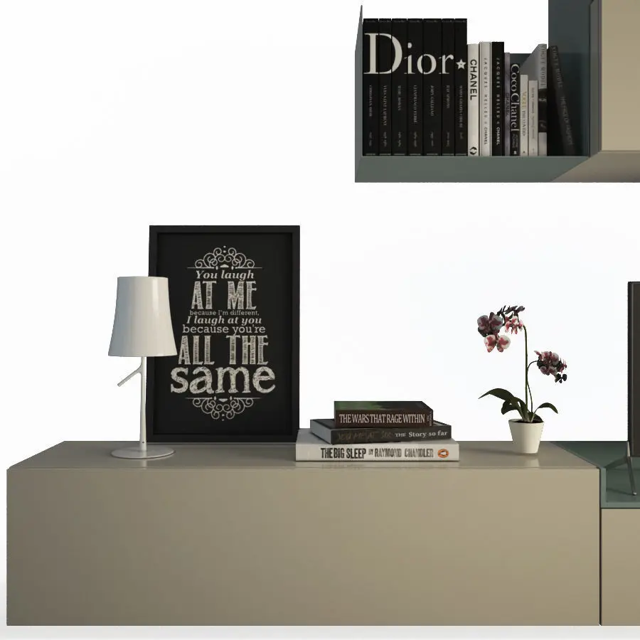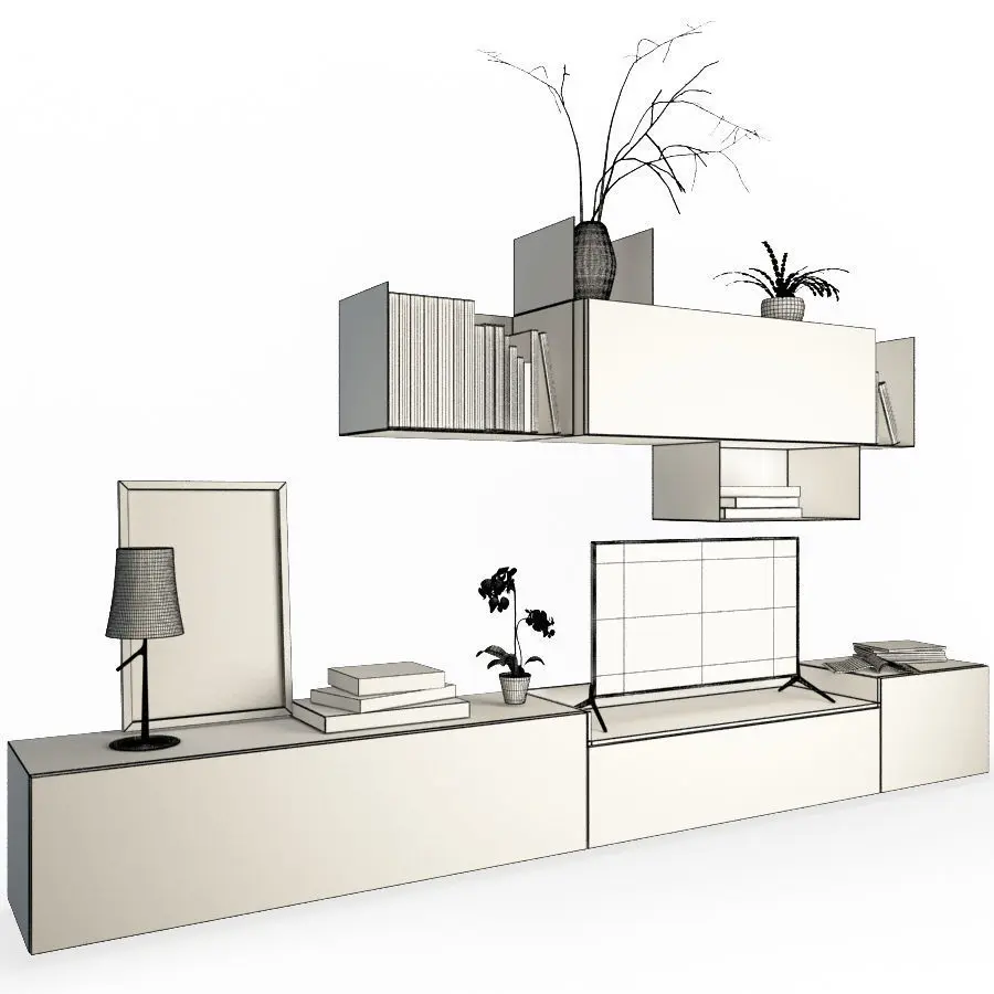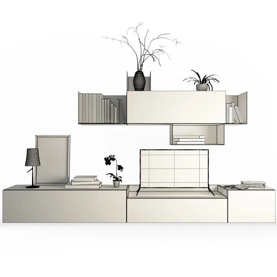 All books, magazines, plants and other decorative elements are included in the 3d model.