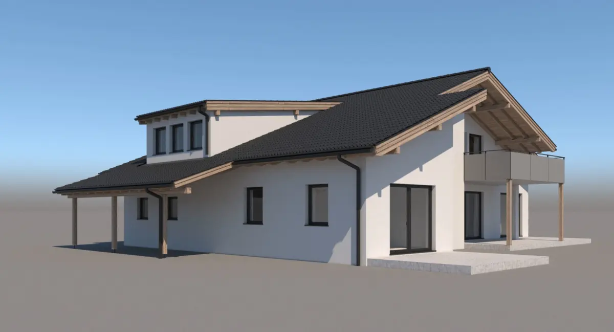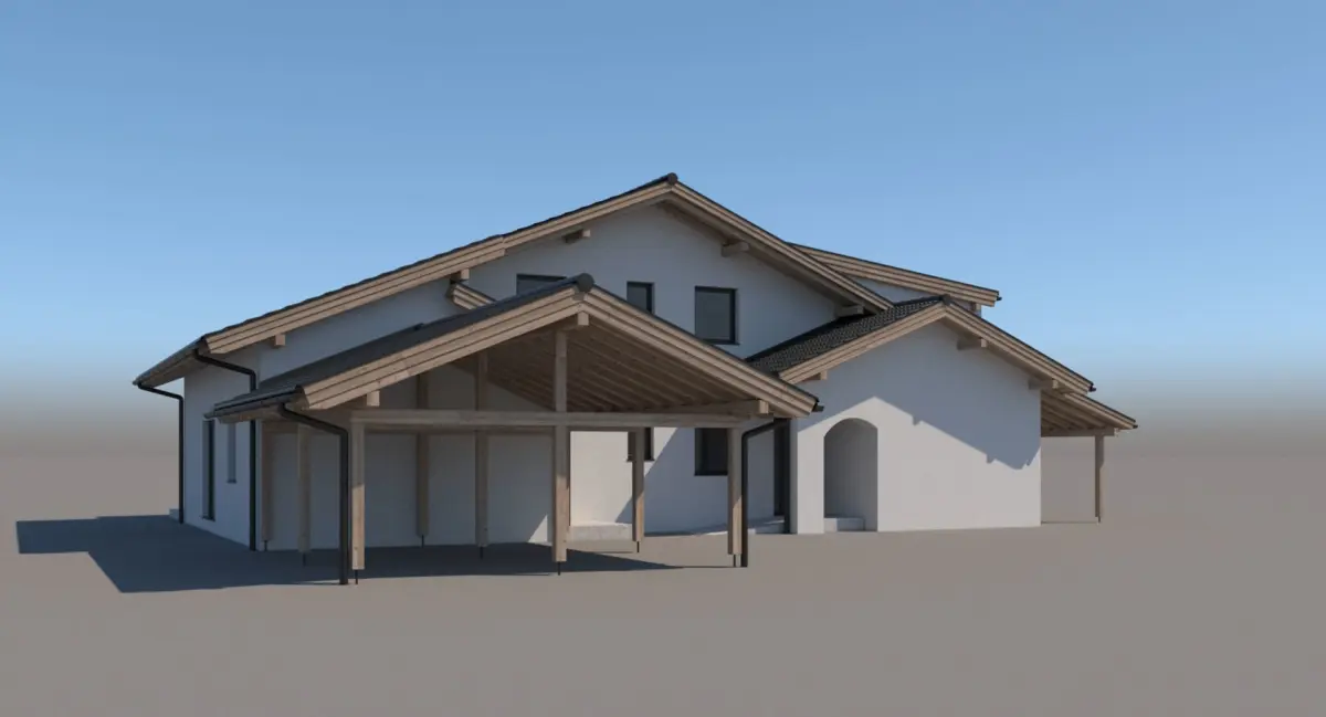 A DETAILED 3D MODEL OF A CONTEMPORARY SWISS STYLE CHALET / VILLA: