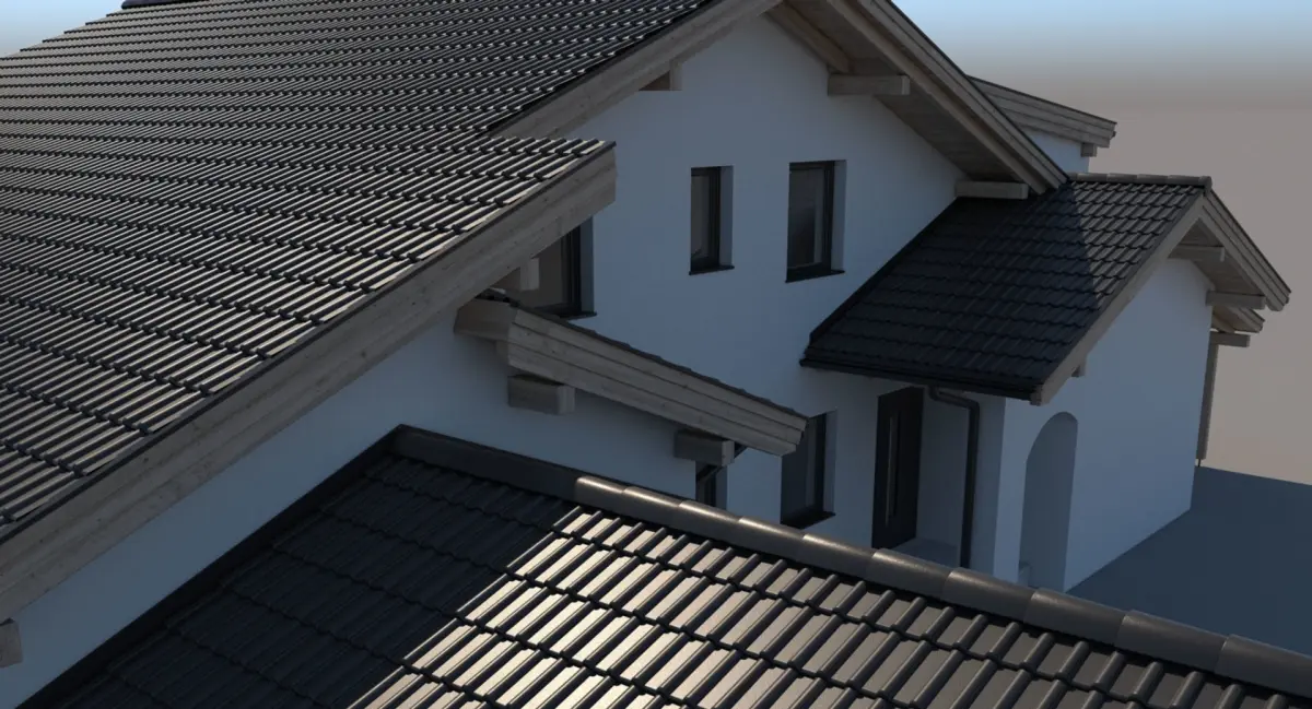- The roof uses V-Ray displacement