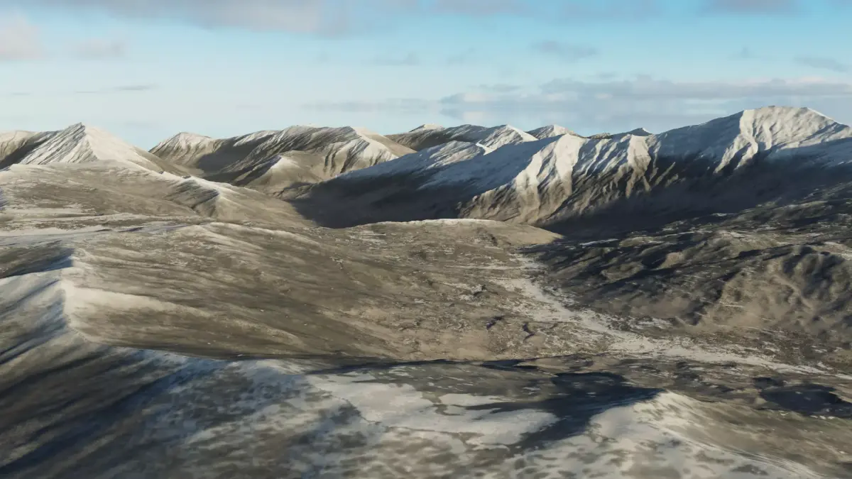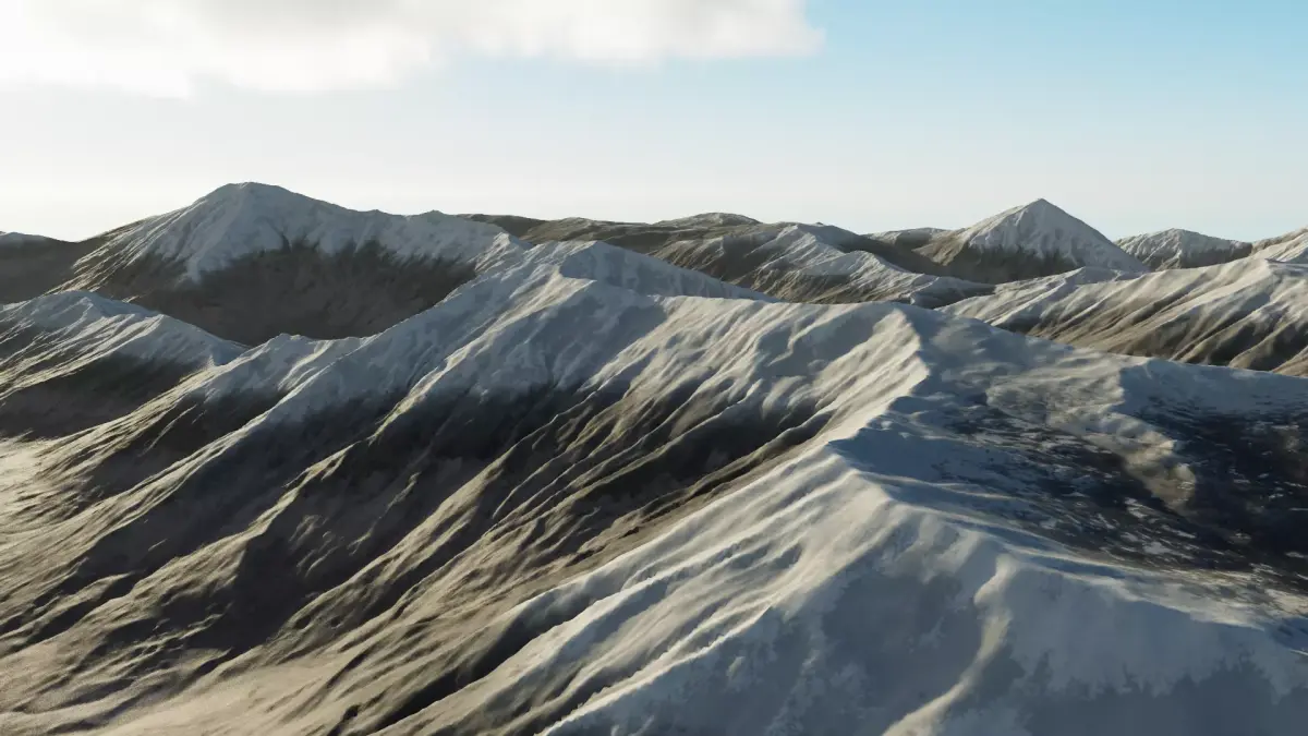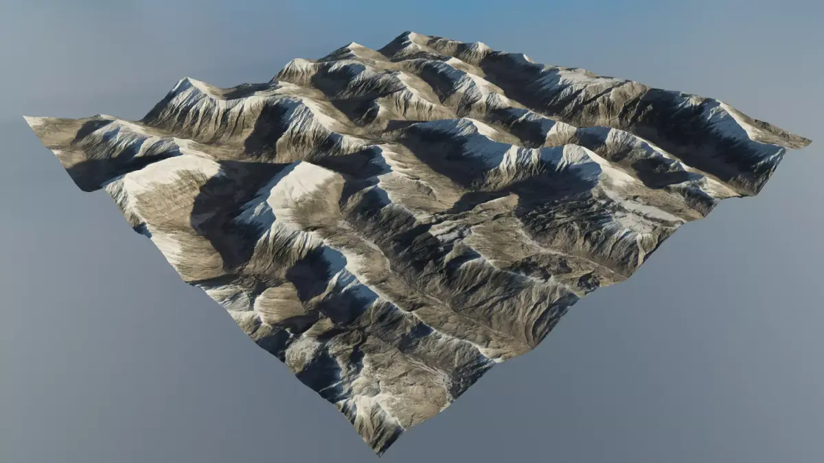 The mountain terrain model, in addition to the basic model, includes a reduced surface optimized model and a depth map that can be directly used for replacement without the need to use the model itself. Moreover, there are masks for rivers, snow, and vegetation.