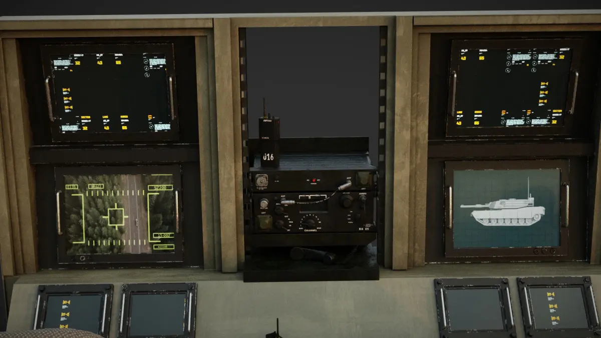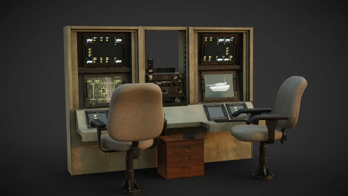 a control room console modelan office chair modela radio telephone modela walkie talkie radio model