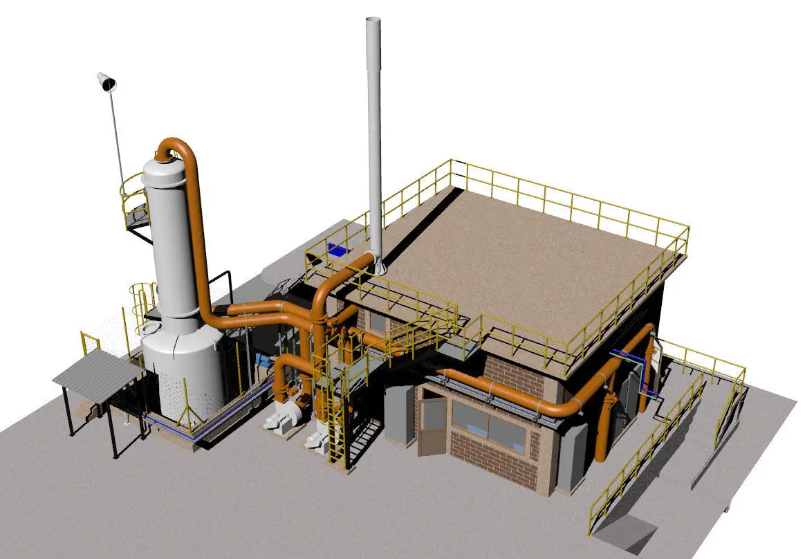 Cuarto almacenamiento de cloro y torre lavadora de gases (scrubber)