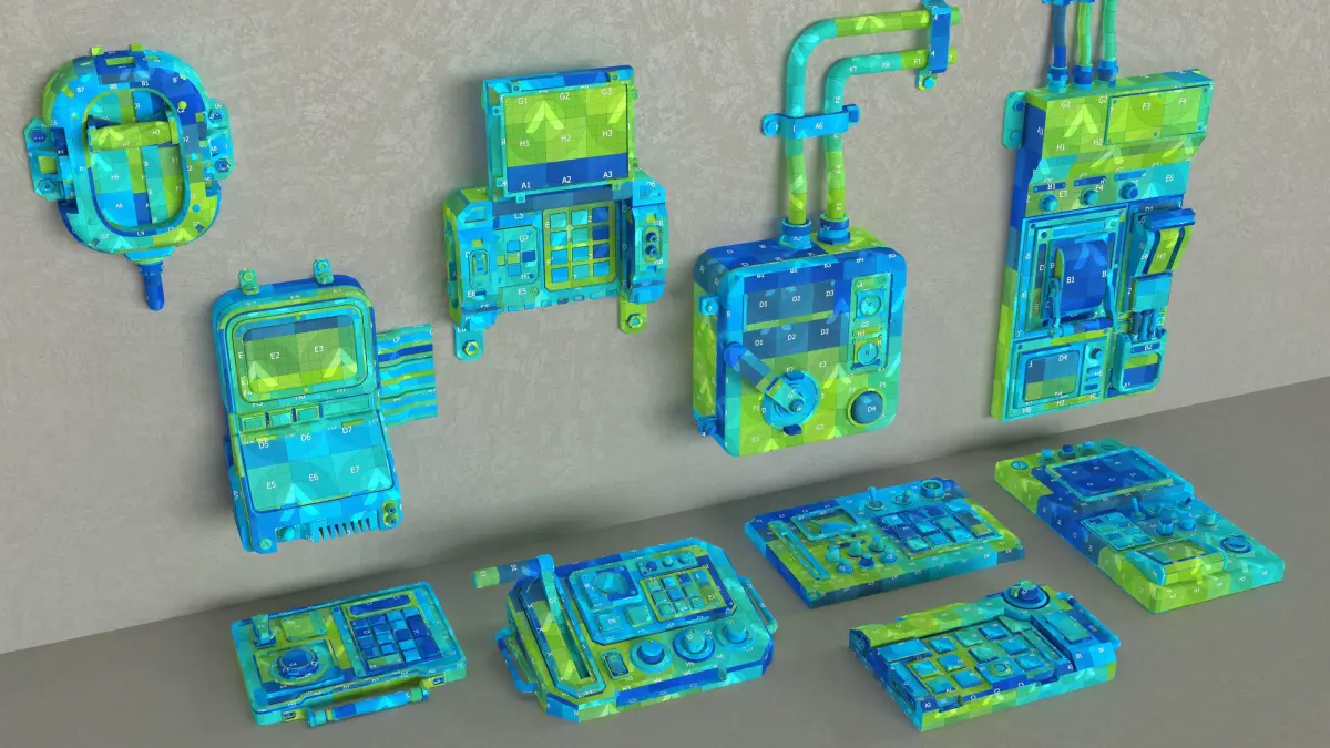 10 low poly textured(PBR) control panels