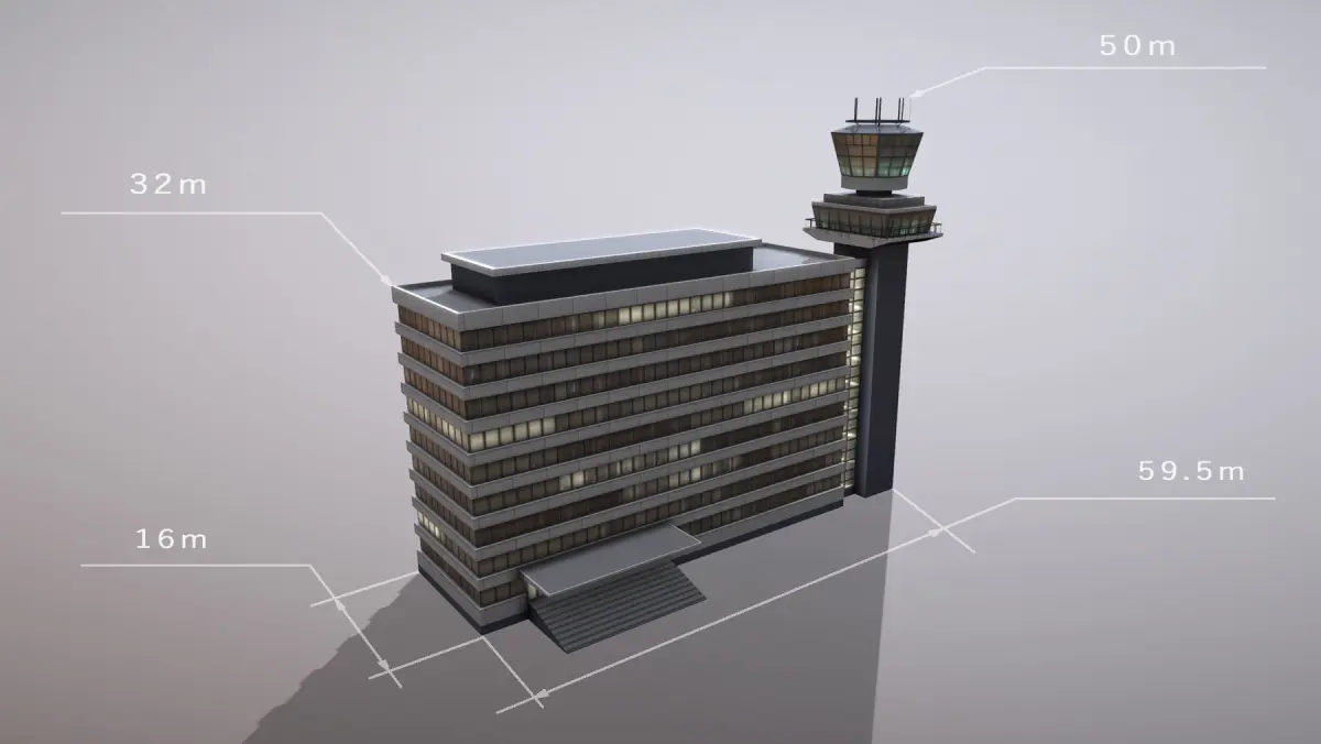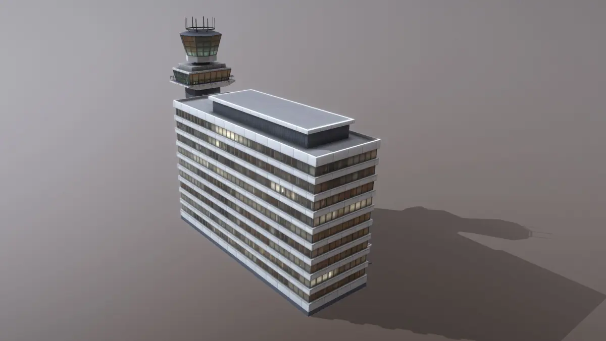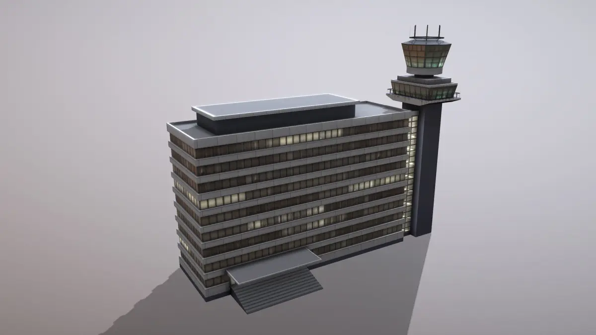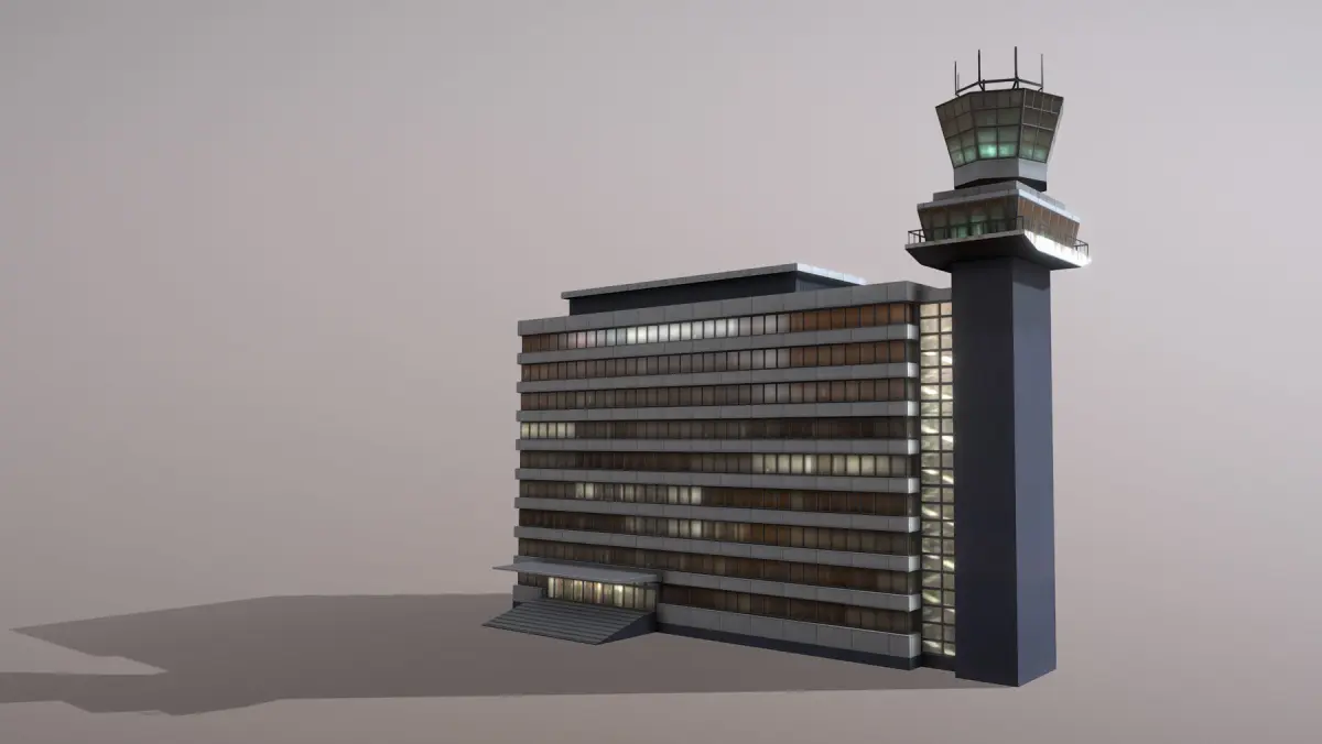 Low-poly 3D model Airport Control Tower with LODs