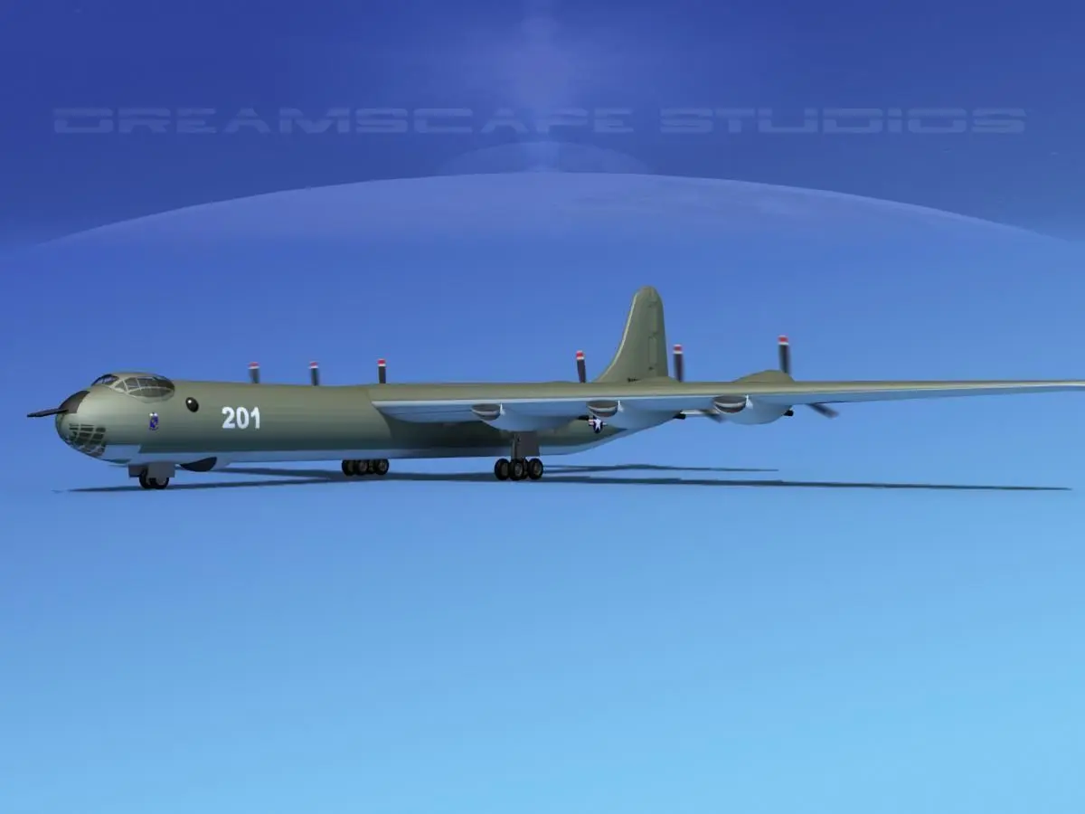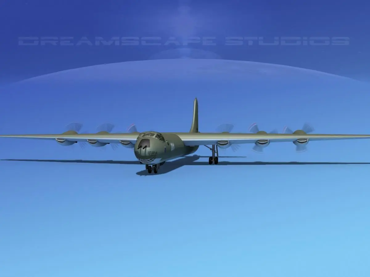 Version B-36A (used for training) and B-36B come with propellers only, the B-36D through final production included 4 jet engines mounted below the wings in pods of two engines each outside of the propeller engines. This model includes a lot of detail and paint schemes from actual squadrons. There are many animateable features including 4 turbines, flaps, ailerons, rudder, elevators, landing gear retract and landing gear doors. Propellers are animated. The models are fully textured.