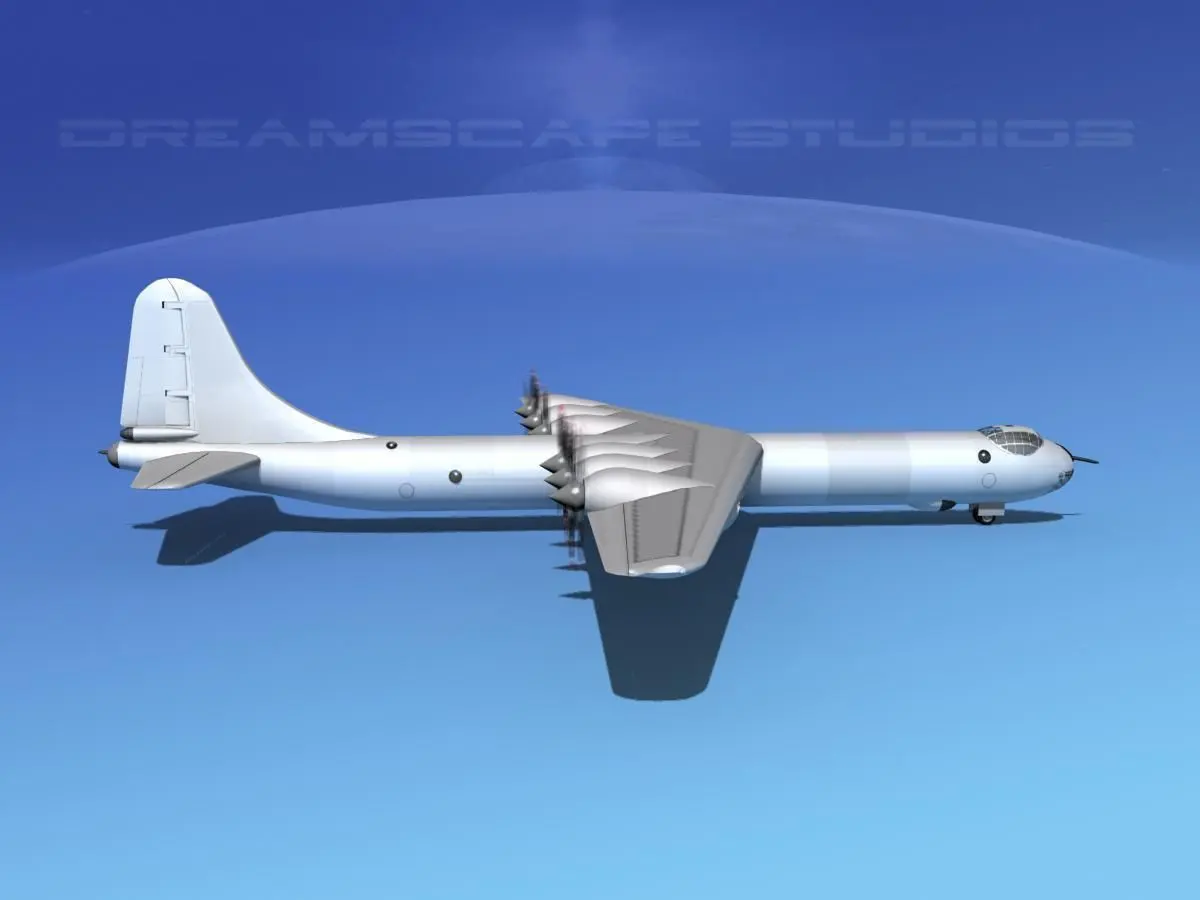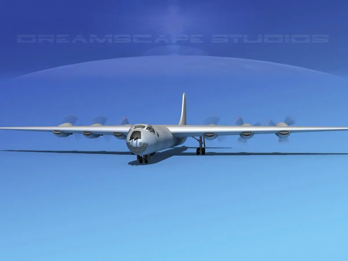 Version B-36A (used for training) and B-36B come with propellers only, the B-36D through final production included 4 jet engines mounted below the wings in pods of two engines each outside of the propeller engines. This model includes a lot of detail and paint schemes from actual squadrons. There are many animateable features including 4 turbines, flaps, ailerons, rudder, elevators, landing gear retract and landing gear doors. Propellers are animated. The models are fully textured.