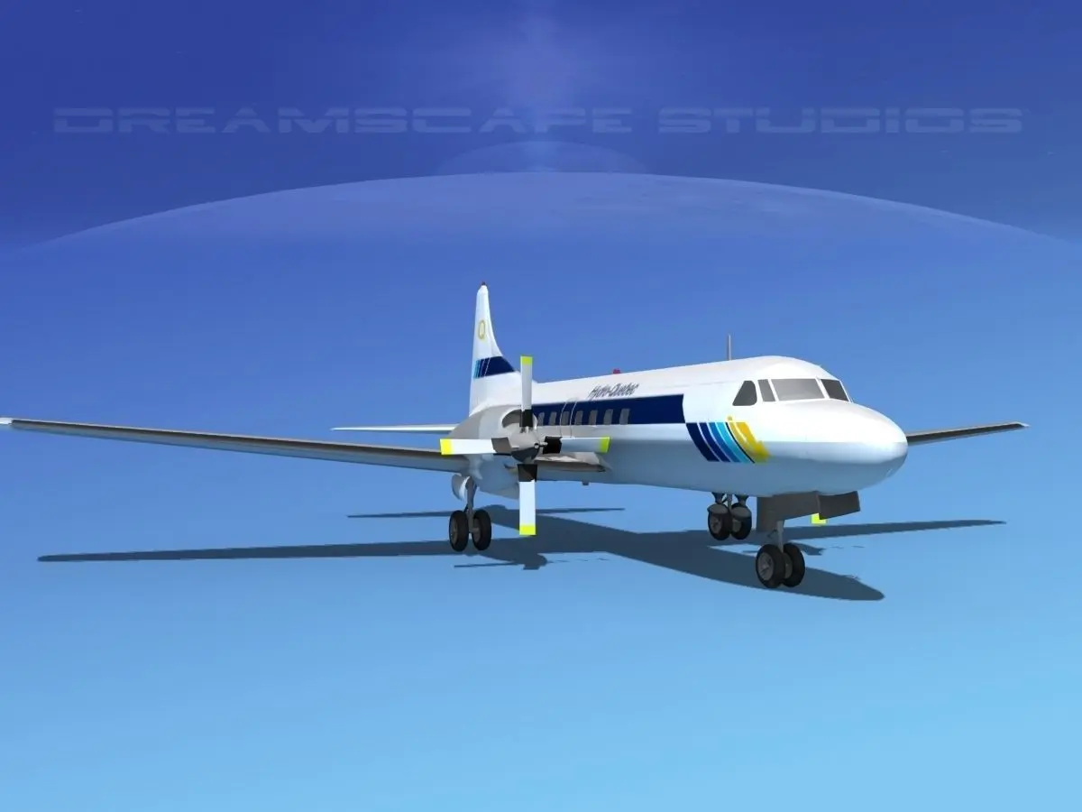 The Convair CV-580 was a very popular transport aircraft for the medium haul medium load commercial airlines in the 1960s and 1970s. It was active with major and regional airlines until the late 1970s and early 1980s when they were replaced by jets, usually DC-9 and 737s. Built for smaller regional carriers and replacements for the CV-340 and Martin 404, it was essentially a CV-340 with Allison Turboprop enginesproviding more power, speed and efficiency. The aircraft was used by many smaller carriers for freight and charter operations well into the 2000s. Most are out of service now but some are still in service around the world.