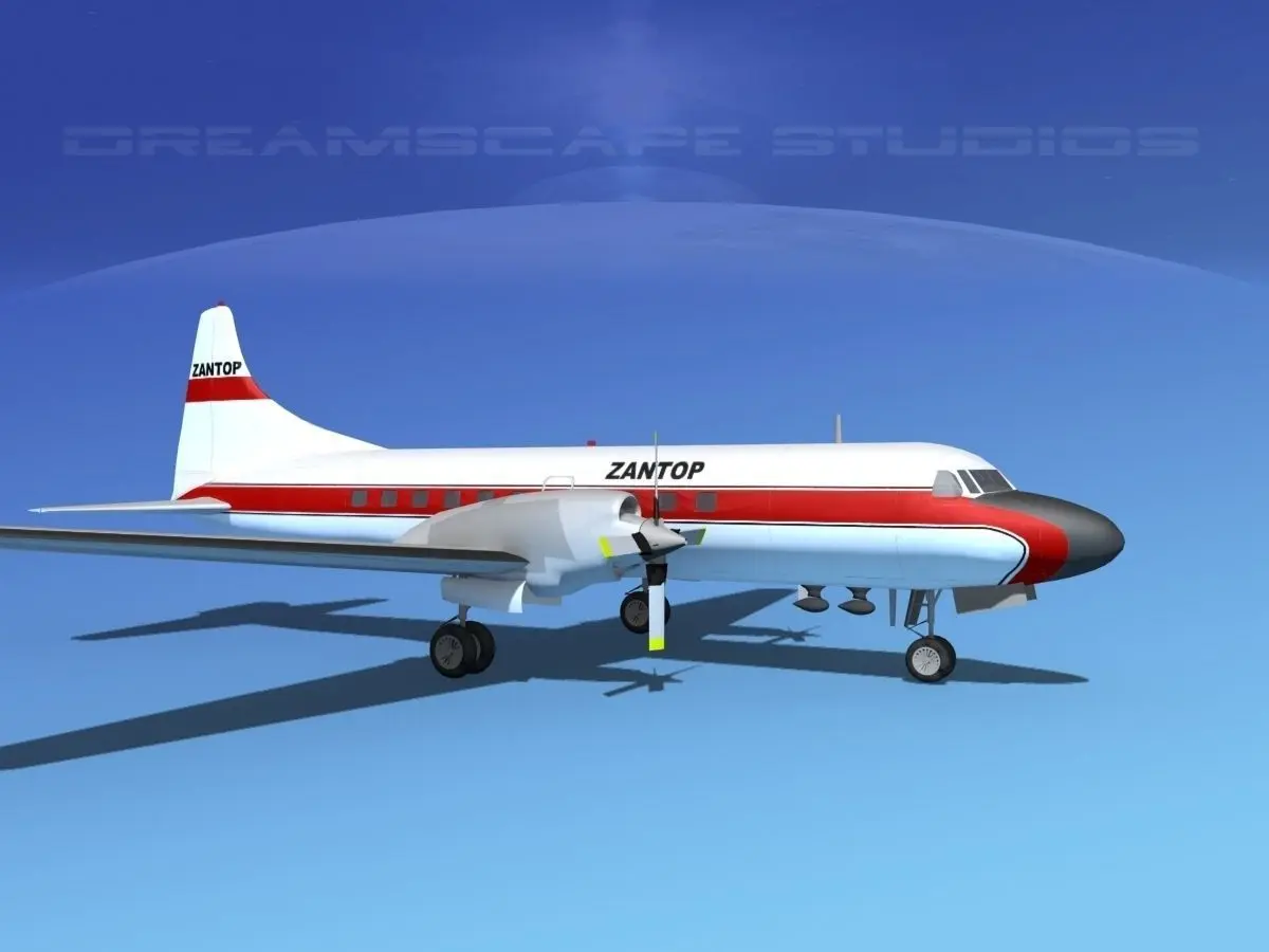 The Convair CV-580 was a very popular transport aircraft for the medium haul medium load commercial airlines in the 1960s and 1970s. It was active with major and regional airlines until the late 1970s and early 1980s when they were replaced by jets, usually DC-9 and 737s. Built for smaller regional carriers and replacements for the CV-340 and Martin 404, it was essentially a CV-340 with Allison Turboprop enginesproviding more power, speed and efficiency. The aircraft was used by many smaller carriers for freight and charter operations well into the 2000s. Most are out of service now but some are still in service around the world.