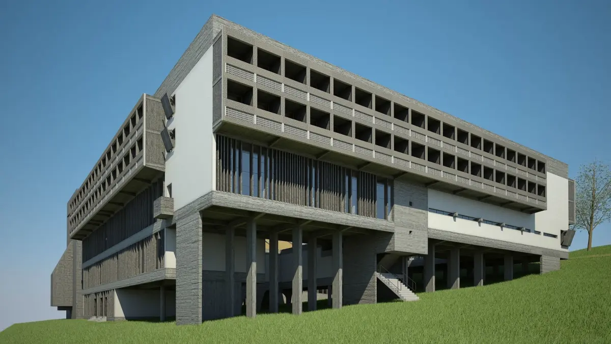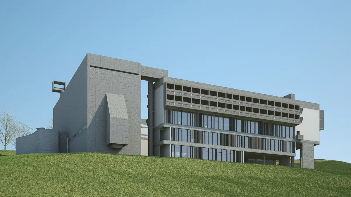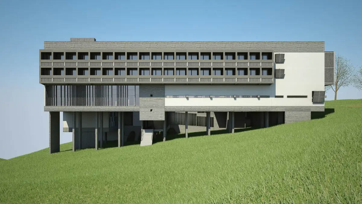 Detailed 3D model of Le Corbusier's Monastery of Sainte Marie de la Tourette. With complete interior (more detail given to main areas).Constructed from original blueprints.