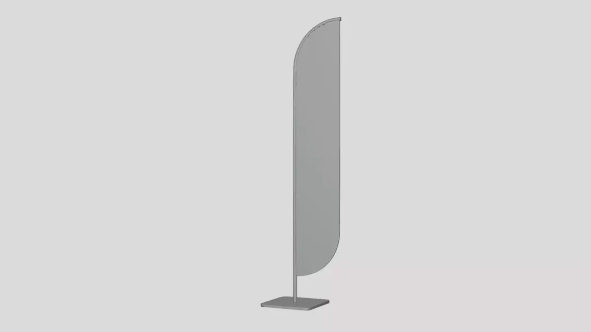 3D model of a convex standing flag with pole and stabilizing base. Ideal for outdoor branding, event promotion mockups, or signage visualization. Real proportions with UV-unwrapped clean geometry. No textures or materials included.