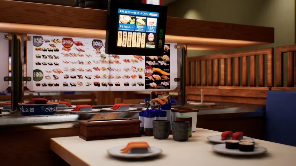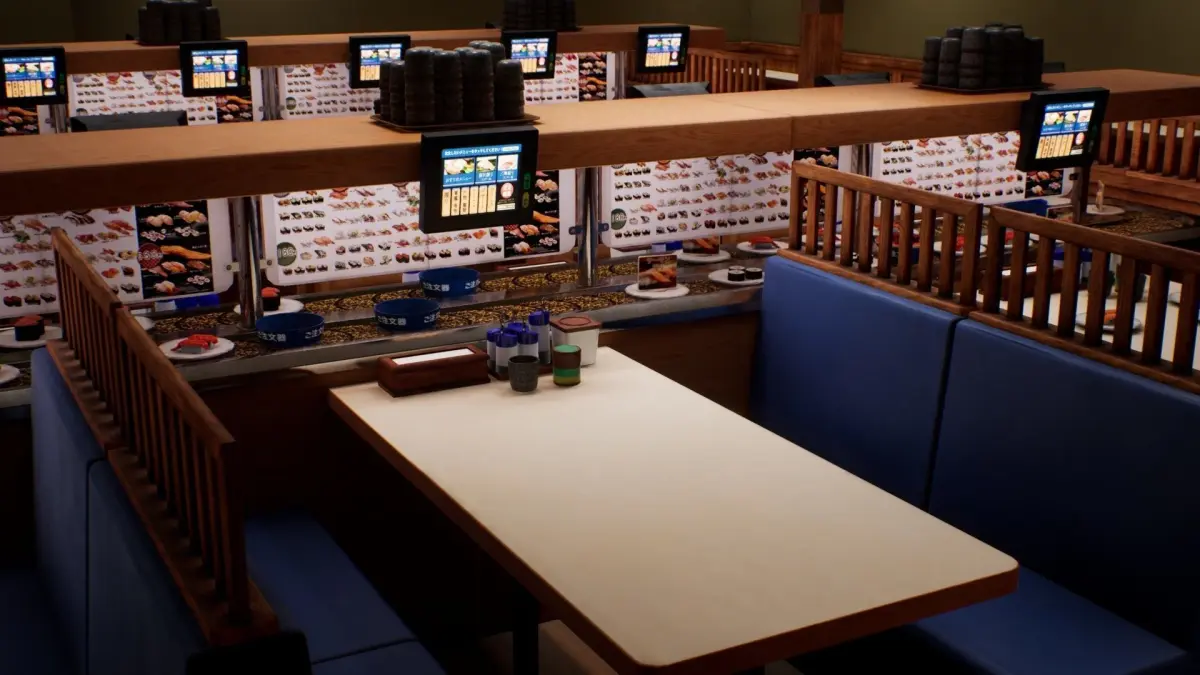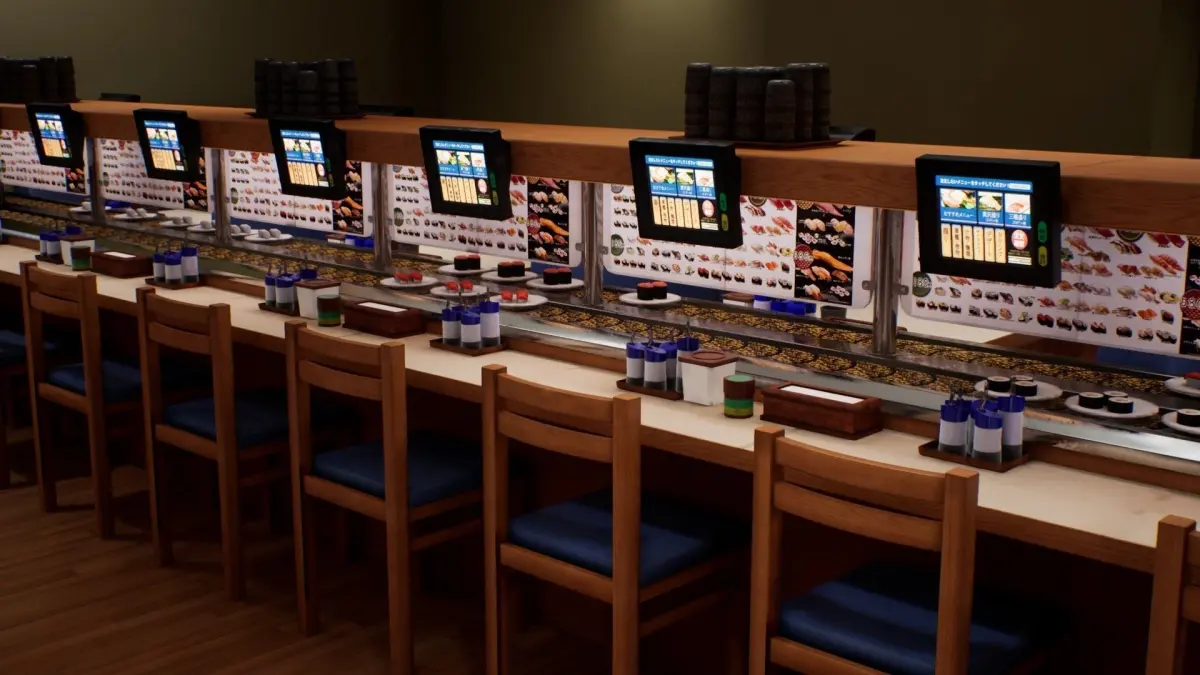 A model pack including various Japanese conveyor belt sushi restaurant assets and the scene.