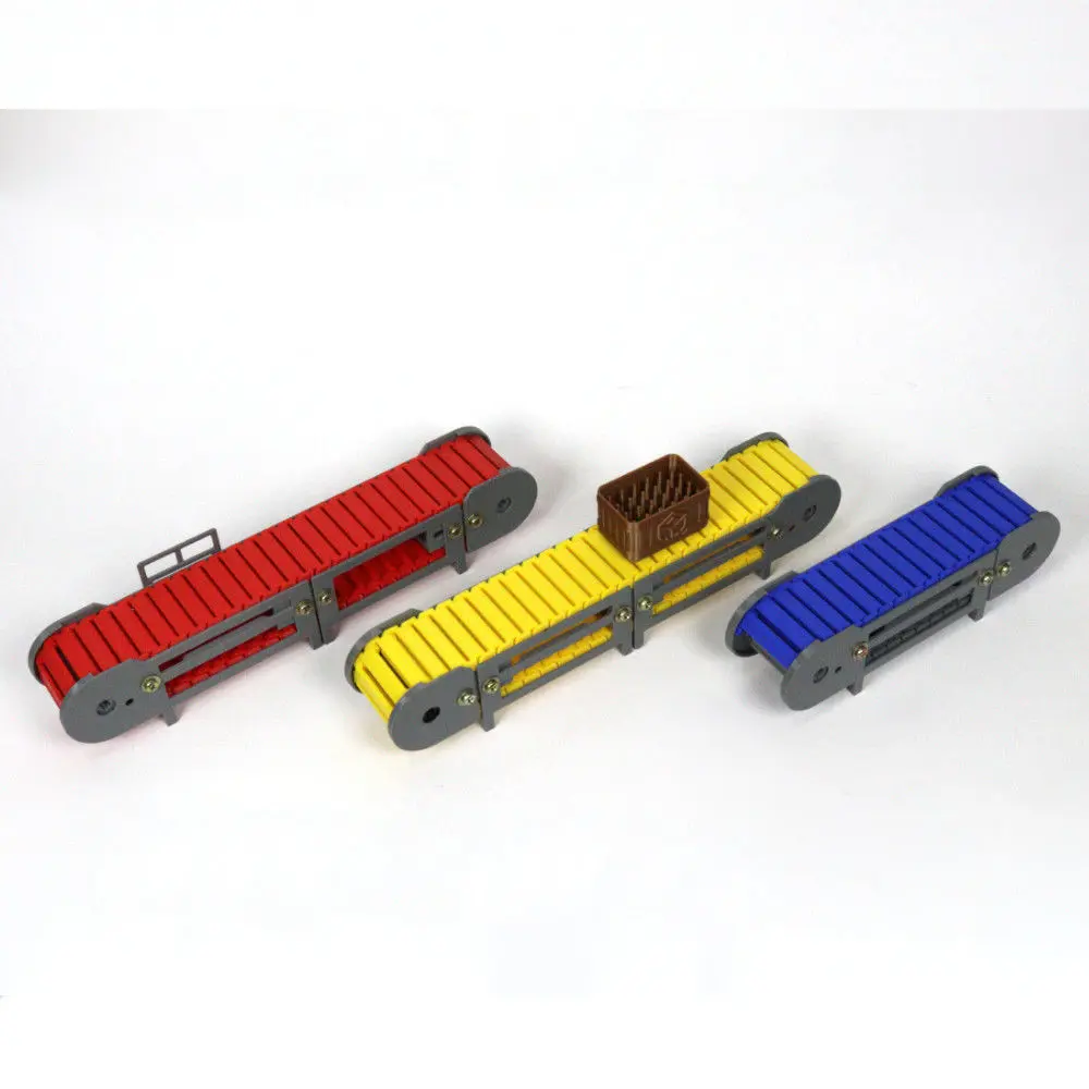 Minimum Module Legnth: 16 cm;Increment size: 8cmUsable width: 32mm;Motor drive 3~6Vdc with relay activation, allowing reversal;Reflective infrared optical sensors, with sensitivity adjustment;Sensors easily positioned as needed without the use of tools;Customized products for simulation: Tire and Beer Box;Micro servo motor actuator arm for product selection and belt change;Comercial bill of material: