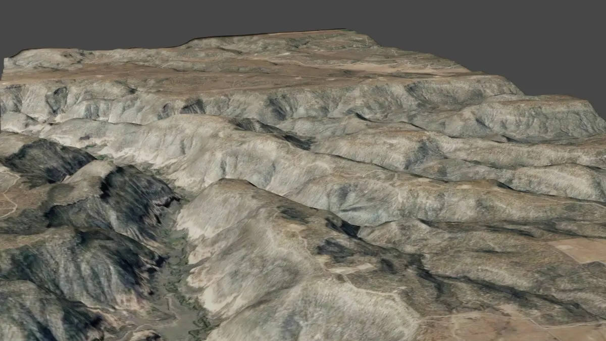 This is a digital 3D topographical model of the Canyons of the Ancients National Monument in Colorado, created using Blender software tool.