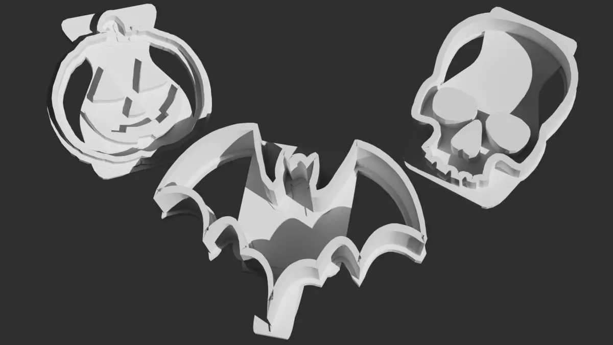 Dimensions Pumpkinhead (height x width x depth): 70x71x38 (millimeters)Dimensions Skull (height x width x depth): 70x51x39 (millimeters)Dimensions Bat (height x width x depth): 51x70x37 (millimeters)