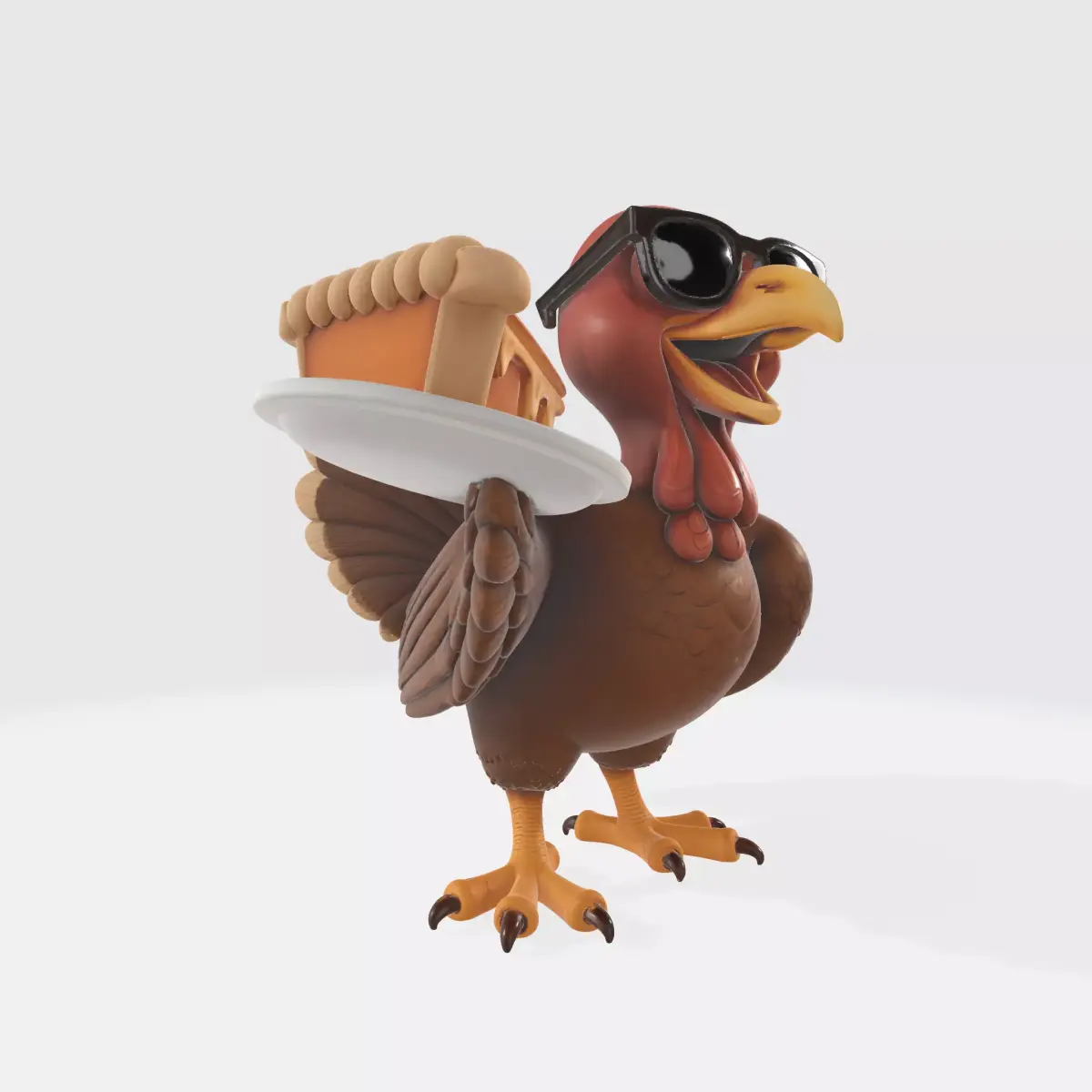 Bring laughter and charm to your Thanksgiving with this hilarious 3D printable turkey model! This cool turkey, rocking stylish sunglasses and proudly holding a delicious slice of pumpkin pie, is the perfect blend of festive and fun. Ideal for holiday centerpieces, table decorations, party props, or as a quirky gift for friends and family who love Thanksgiving humor. This 3D model adds personality and joy to any holiday gathering, whether you use it as decor, a display piece, or even a conversation starter at the dinner table.