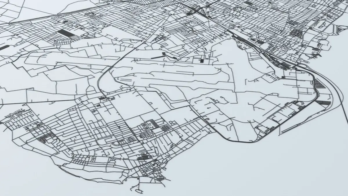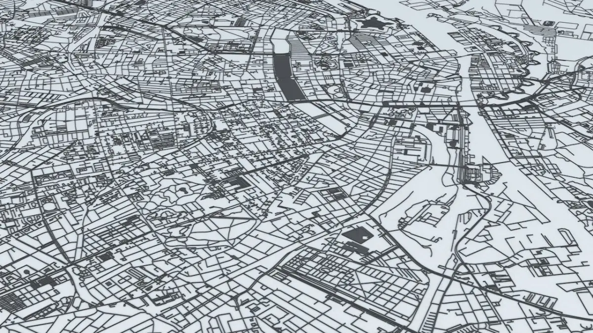 - the model is positioned on a flat surface (road network is on the “floor” - no elevation data included)