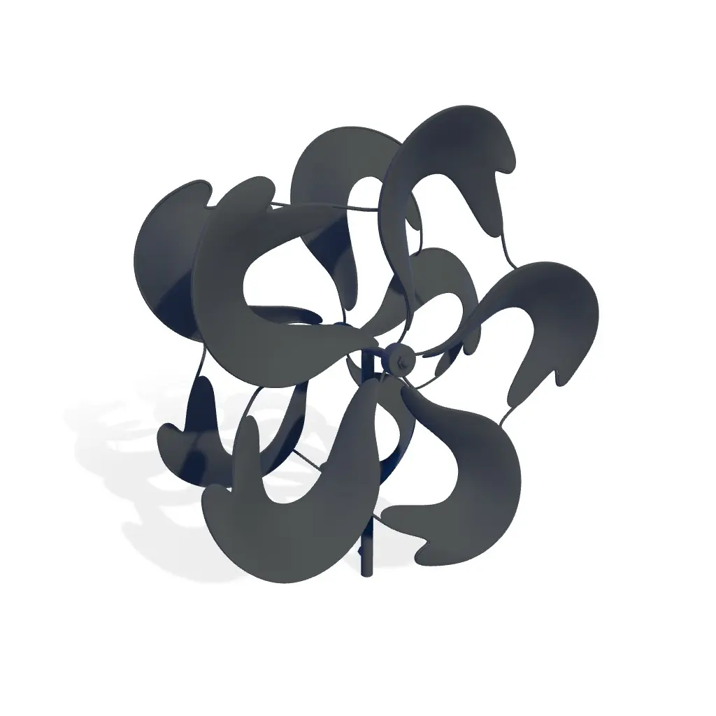 - Take this beauty for a spin, this spinner features metal finish swirl shapes. Its light-weight design spins 360 degrees in the wind and is perfect for your yard year round with its weather-resistant metal design.