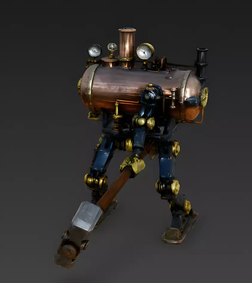 The Overall Concept This asset is a worker-class bipedal machine, designed not for warfare but for heavy labor and demolition. It perfectly fits the Steampunk genre, appearing as a mobile pressure vessel brought to life. It would serve well as an NPC unit in a factory level, a resource gatherer, or a heavy-hitting melee enemy.