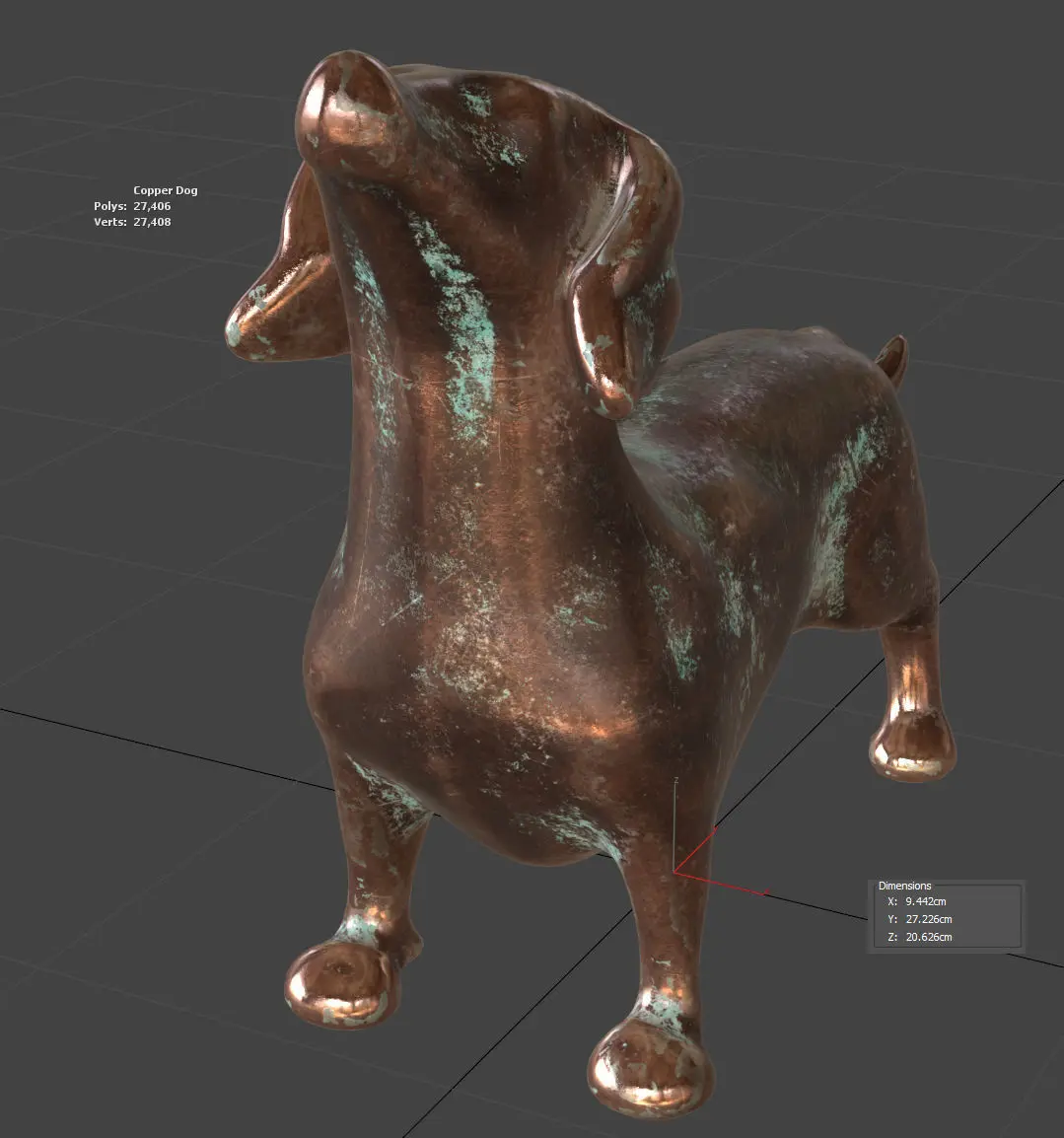 - Realistic Texturing: High-resolution PBR textures replicate the look and feel of aged copper with a touch of verdigris, adding a vintage charm to the model.