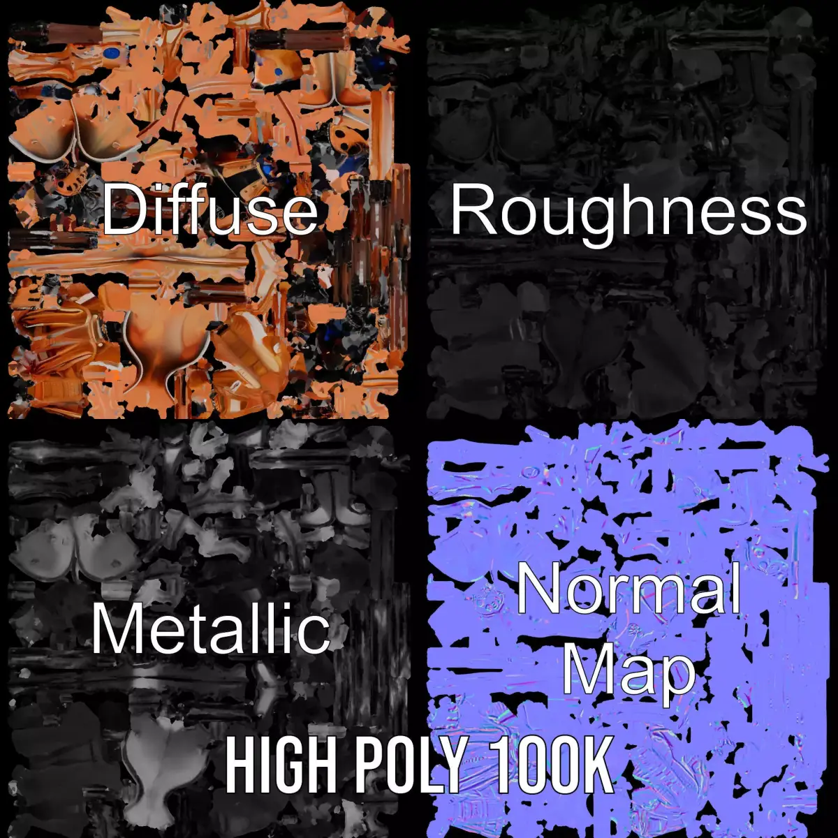 This Copper Mechanical Insect model pack features a striking design, combining futuristic aesthetics with nature’s elegance. The model is meticulously detailed with copper tones, giving it a unique, lifelike appearance. Each model has 3 levels of detail: low-poly(1000 triangles for mobile), middle-poly(10,000 triangles for environment), and high-poly(100,000 triangles), which allows for the use of this model in production rendering (such as 3ds Max, Maya, Cinema4D, Blender, Vray/Corona/Cycles and all others), game engines (Unity and Unreal compatible), and interactive presentations, providing a choice of detail based on the LOD System principle. Perfect for use in sci-fi settings, educational displays, or creative projects, this model's textures are PBR, Diffuse, NormalMap, and reflection/roughness/metallic, which are suitable for any modern rendering engine. All models accurately unwrapped and have no overlapping UV. All textures are 4096*4096 in size. If you liked this model, please leave a like and comment!