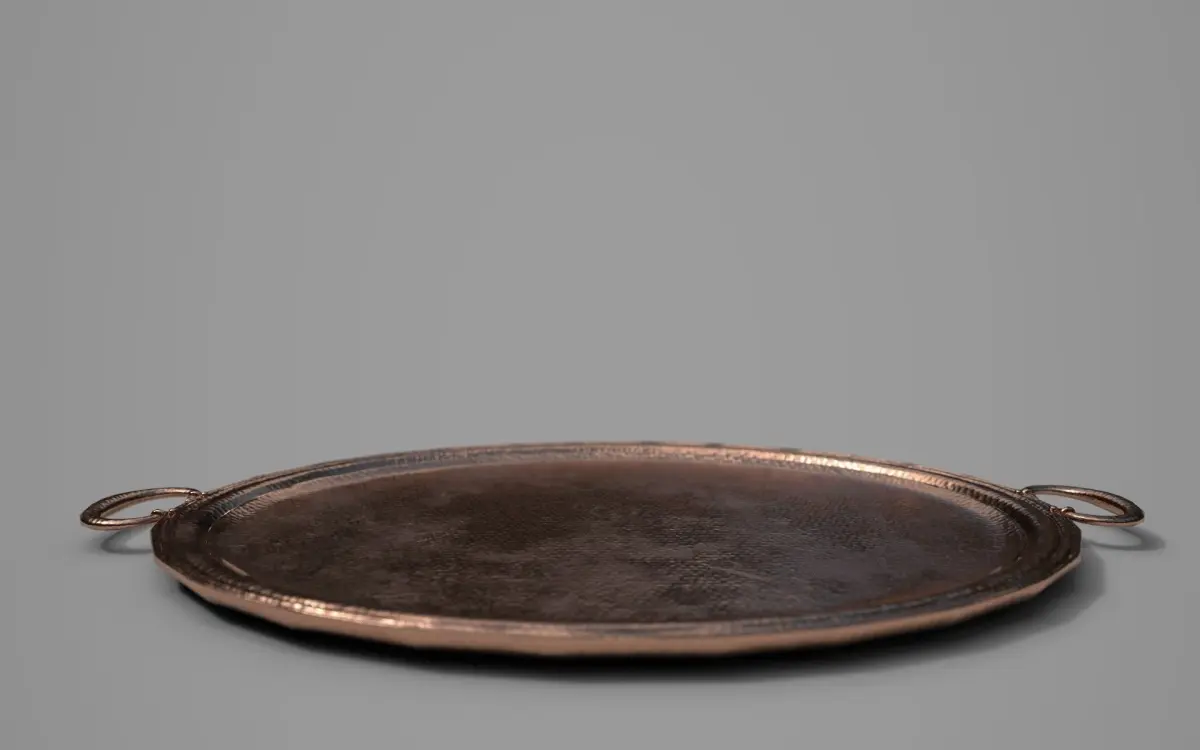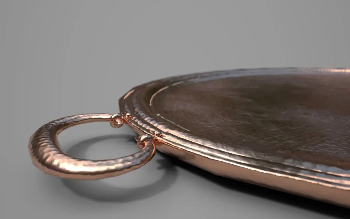 Game ready, low poly hammered copper platter with 2K textures for the hardware models and a 4K texture for the main plate area.