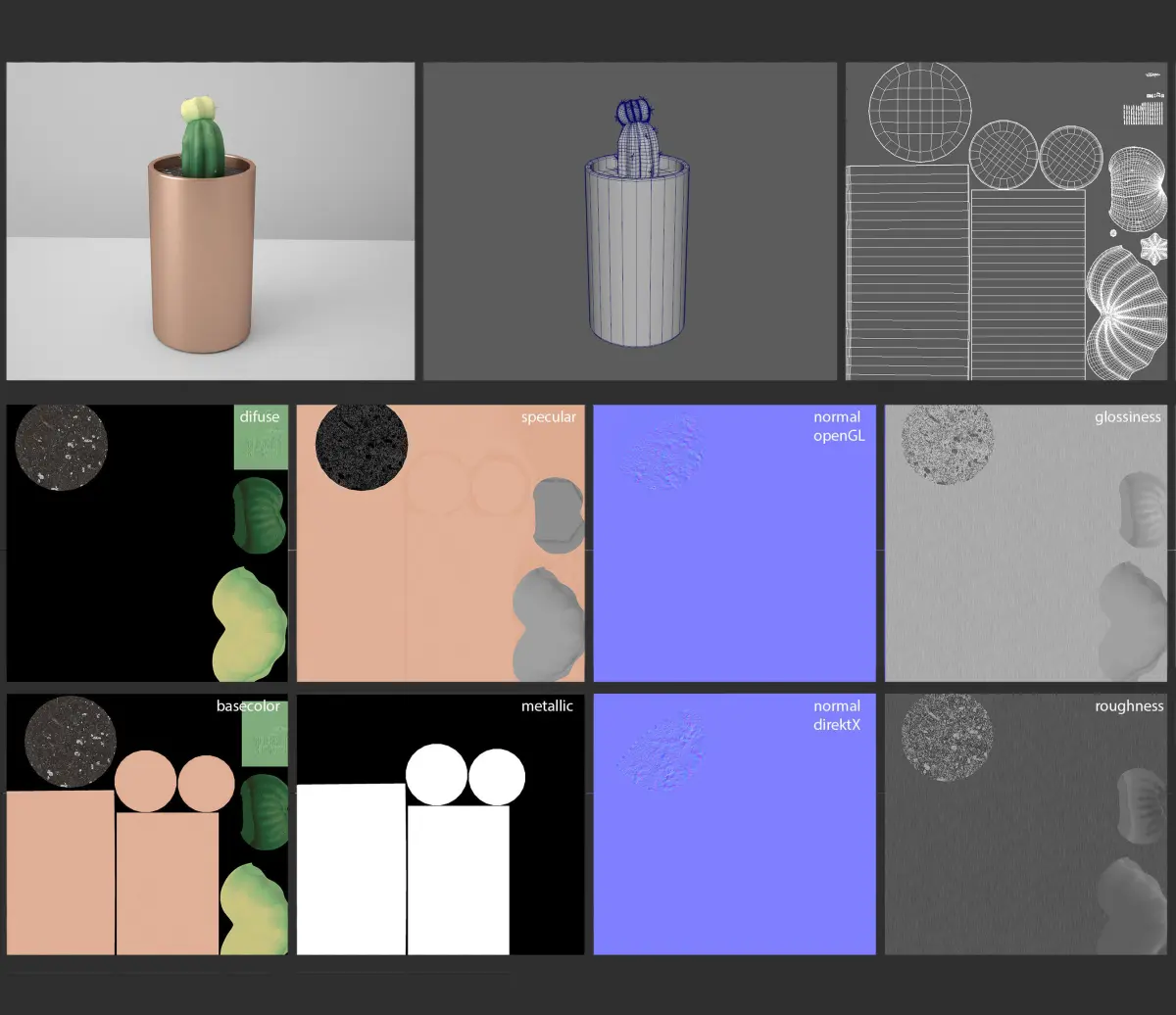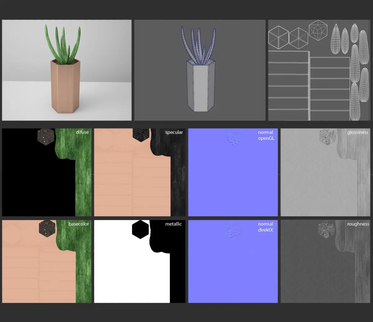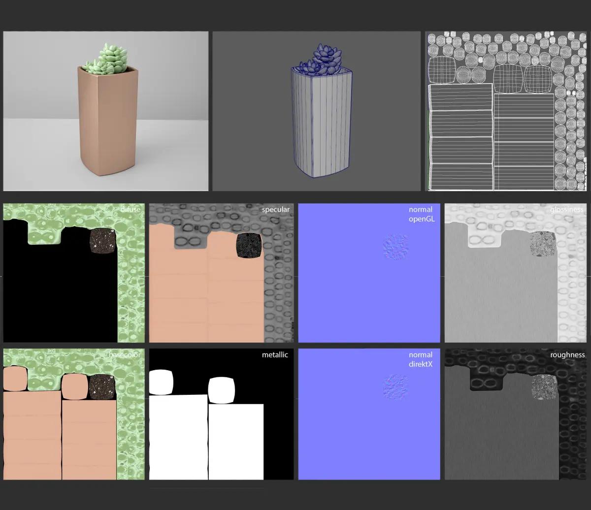 You get PBR flattened textures for VRay Standard Material (VRayMtl)