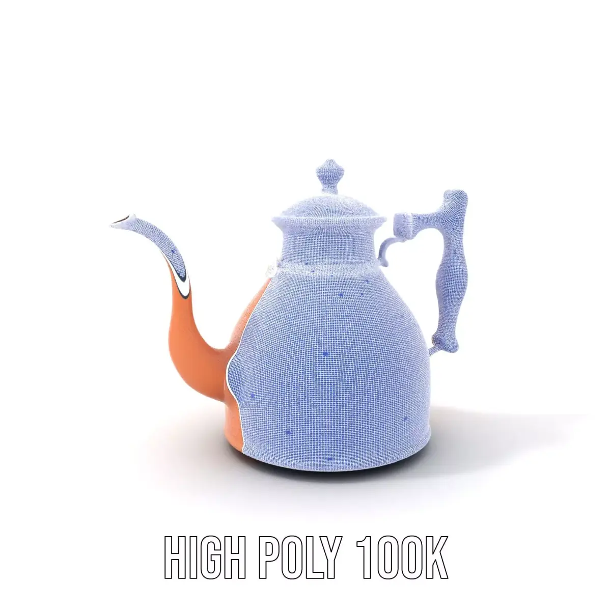 This beautifully crafted copper teapot features a classic design, perfect for any virtual kitchen or interior design project. Its realistic handle and spout detail add an authentic touch. Each model has 3 levels of detail: low-poly (1000 triangles for mobile), middle-poly (10,000 triangles for environment), and high-poly (100,000 triangles), which allows for the use of this model in production rendering (such as 3ds Max, Maya, Cinema4D, Blender, Vray/Corona/Cycles and all others), game engines (Unity and Unreal compatible), and interactive presentations, providing a choice of detail based on the LOD System principle. Ideal for culinary visualizations, VR experiences, or architectural scenes. The model's textures are PBR, Diffuse, NormalMap, and reflection/roughness/metallic, suitable for any modern rendering engine. All models are accurately unwrapped with no overlapping UVs. All textures are 4096*4096 in size. If you liked the model, please like and leave a comment.