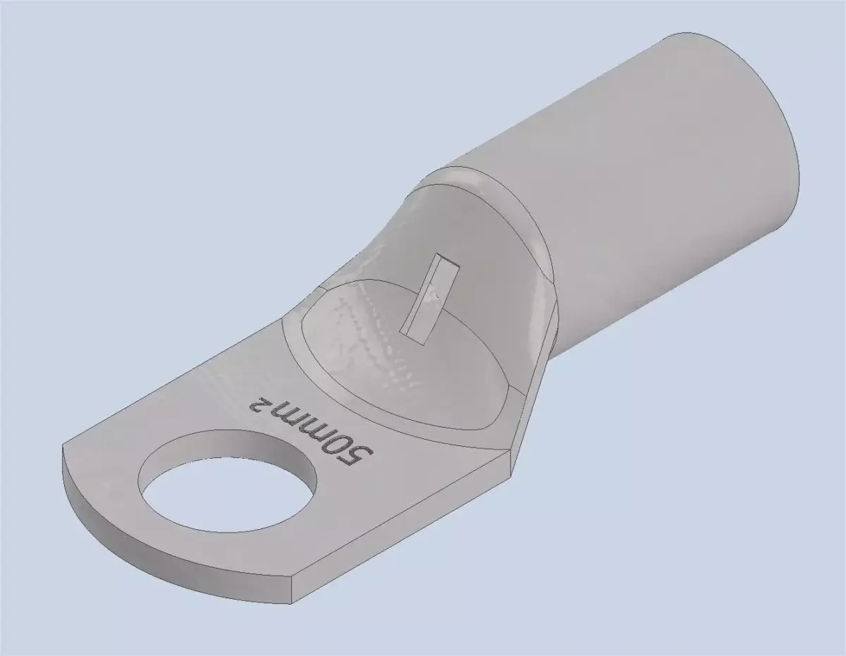 Autodesk Inventor model.Copper tubular terminal 50mm² Electrical part Dimensions: dim=50mm² Bolt size: M10 This product has been designed with high precision and real dimensions and can be used in all programs and all uses, as long as they use one of the following extensions (.ipt/.stp/.obj/.mtl) and you can modify its measurements or appearance through the Autodesk Inventor program or similar.