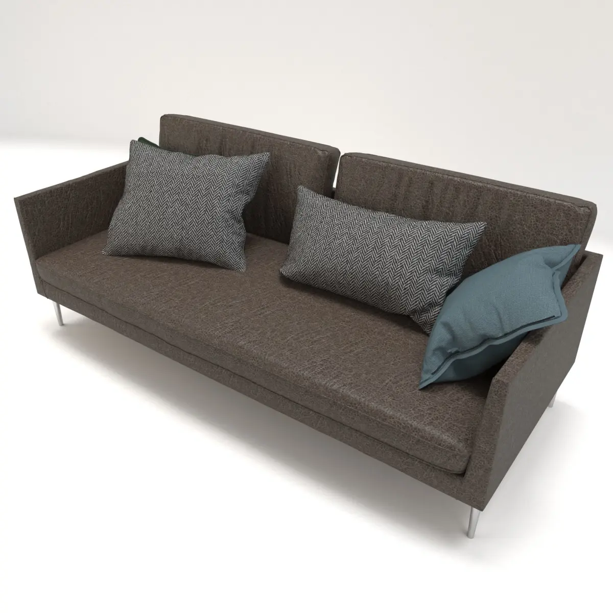 3d Model of the couche made by Cor. I realized two different version that you can find attacched in file, like is shows in the preview, the first one is in light gray fabric and the secodno one i sin leather.The model was realized in 3ds max complete. For the couscion and the pillow I prefer to use marvelous design. The entire model except the seams are unwrapped.
