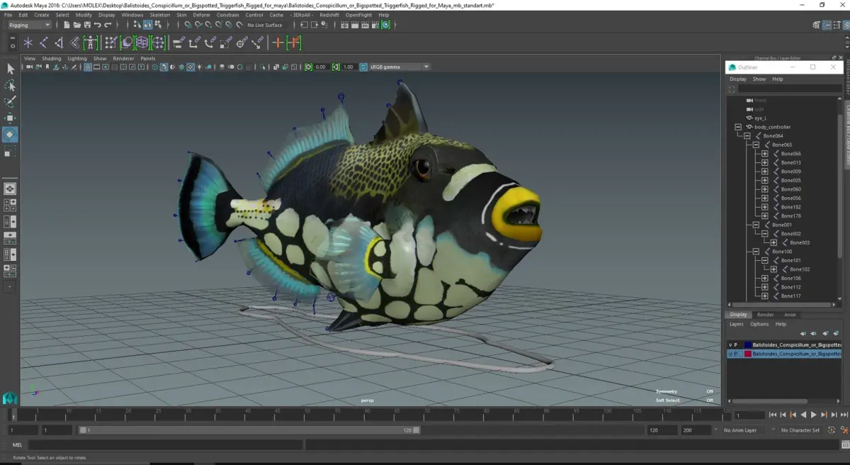 Coral Fishes 3d models fully rigged with bones and skin system in Maya 2012, 2016.