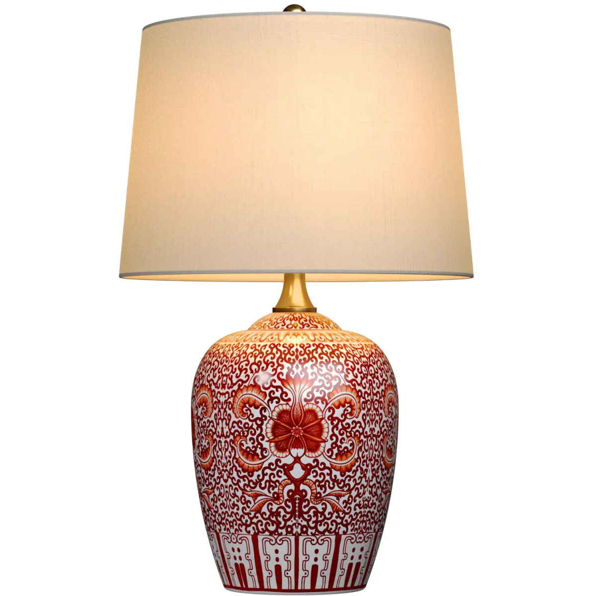 A tall lamp with an original design. The lamp body is hand-painted according to the customer's design.Traditional Porcelain Ceramic Table Lamp with Chinese Sakura Pattern and Fabric Shade for Decorating Living Room,Office, study, Bedroom, Bedside Table,Bedside Table in European Provence Style Jennifer Ginger Jar Red Ceramic Table LampHand-painted table lamp,ornament,Lotus flowersChinese style lamp for home decoration ,Bedroom Lighting,Modern Bedside Night Lamp