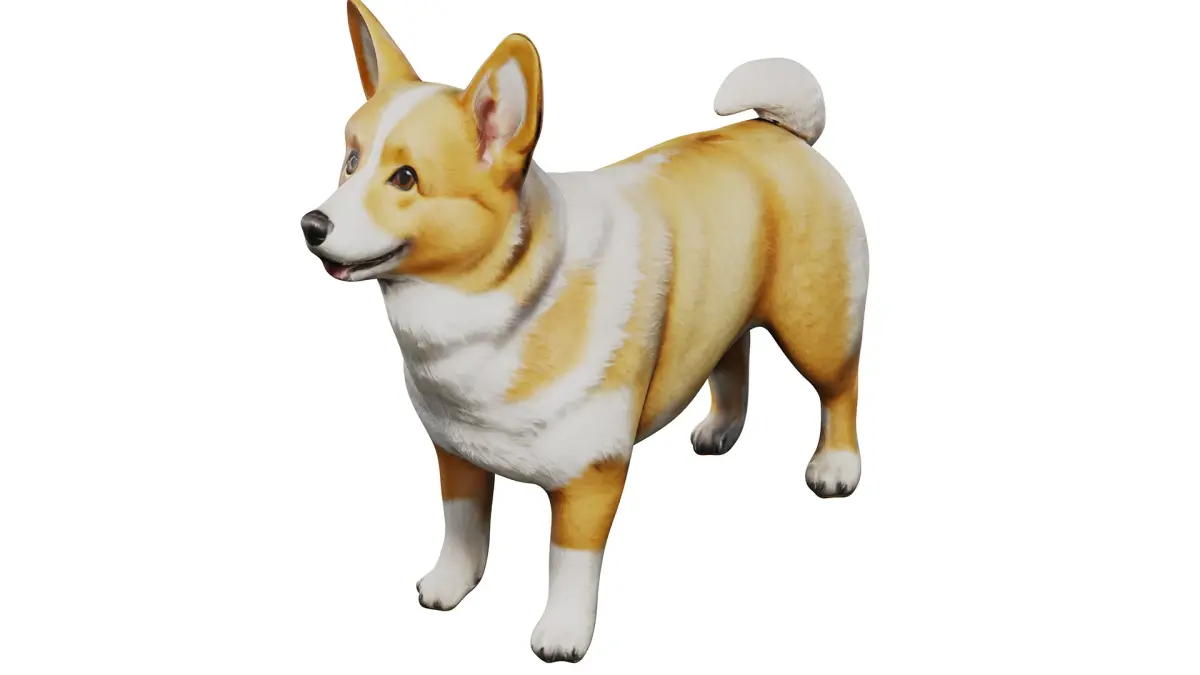A realistic Corgi dog model created in 3ds Max 2018. The model features detailed fur, accurate anatomy, and a natural pose. Suitable for various projects such as animation, games, or static scenes. Versions are available for V-Ray and Corona renderers. File formats include OBJ, FBX, 3DS, ensuring compatibility with most 3D graphics software