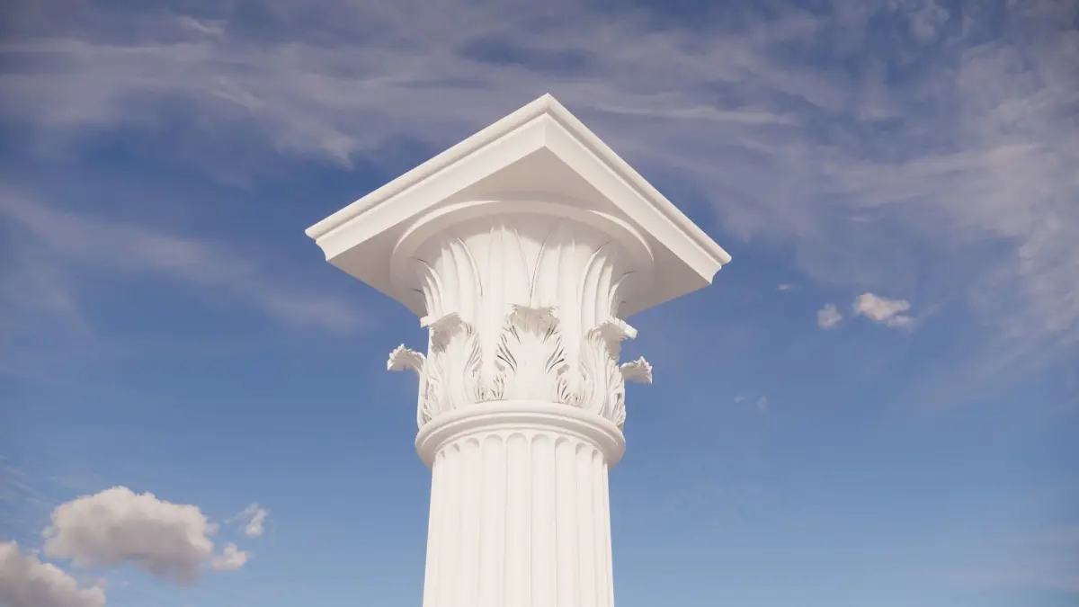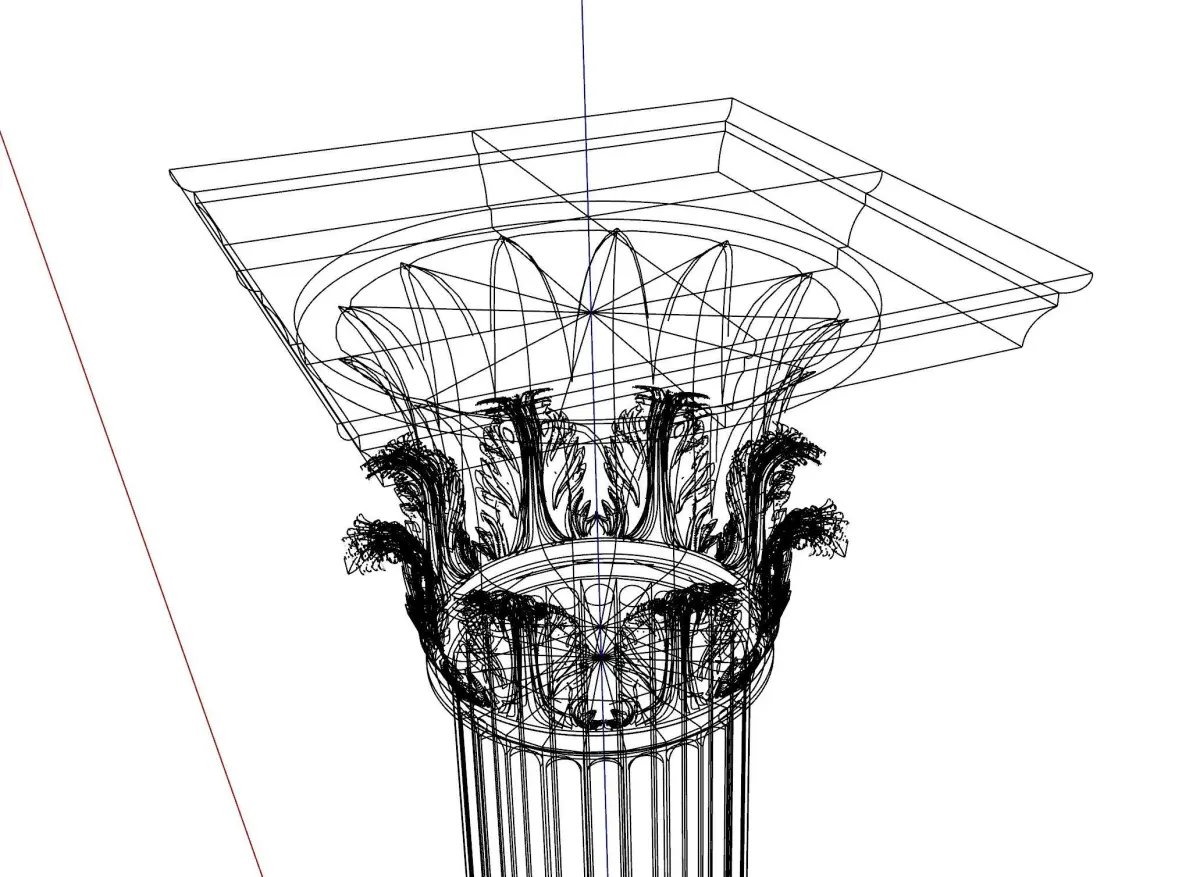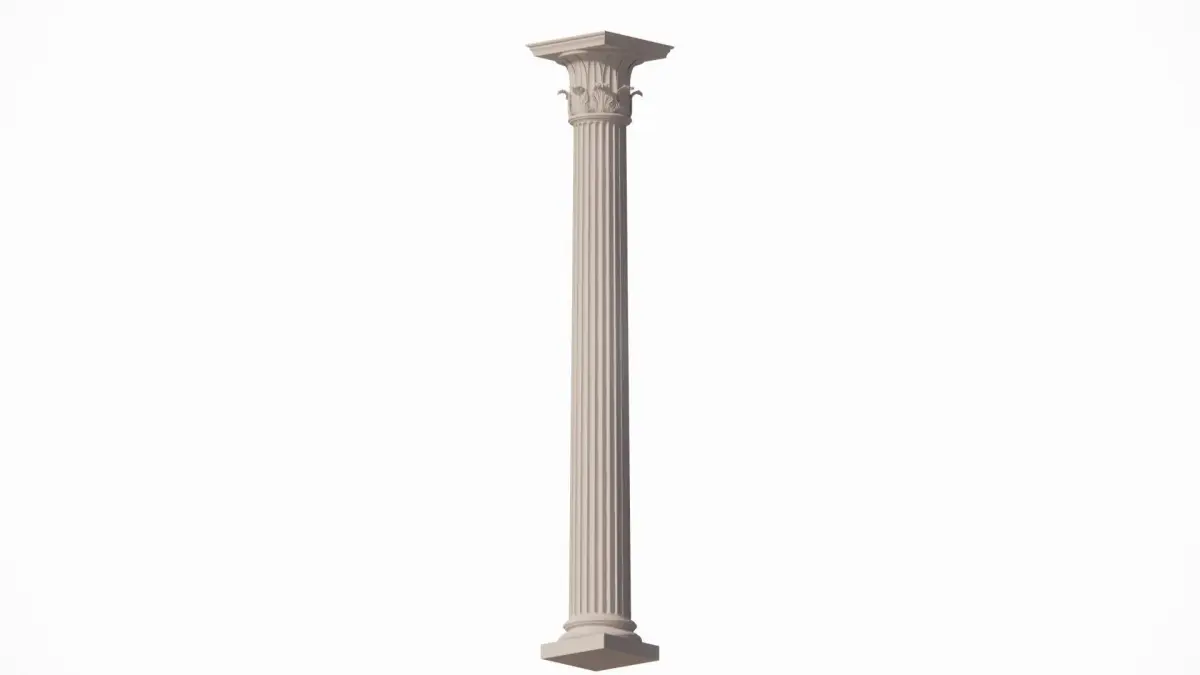Features a fluted column with a simplified version of late Green Corinthian Capital known as the Tower of the Winds Corinthian after the use on the Tower of the Winds in Athens. Noted detail includes a single row of curved Acanthus Leaves at the bottom of the capital, with a row of narrow palm leaves behind it.