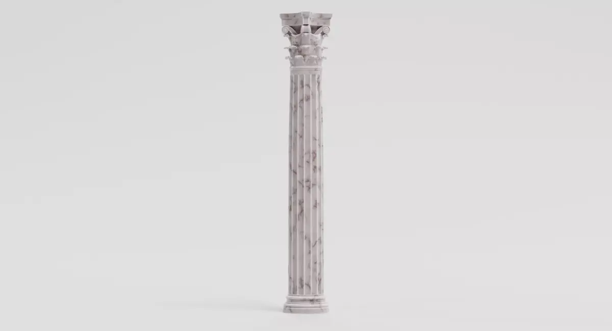 A detailed Corinthian column inspired by classical architecture, featuring a slender shaft and an ornate capital with stylized acanthus leaves. The proportions and decorative elements are designed to feel authentic while remaining clean and practical for 3D production use. The model is suitable for architectural visualization, historical environments, games, or cinematic scenes where an elegant and decorative column is required.