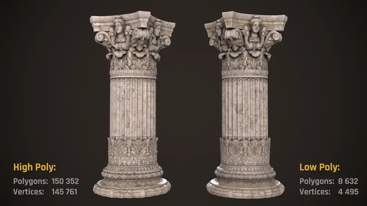 Model High poly statistics Corinthian Order Low Poly Tris :