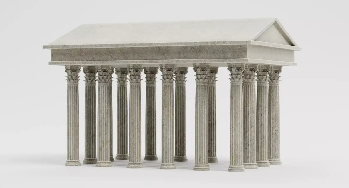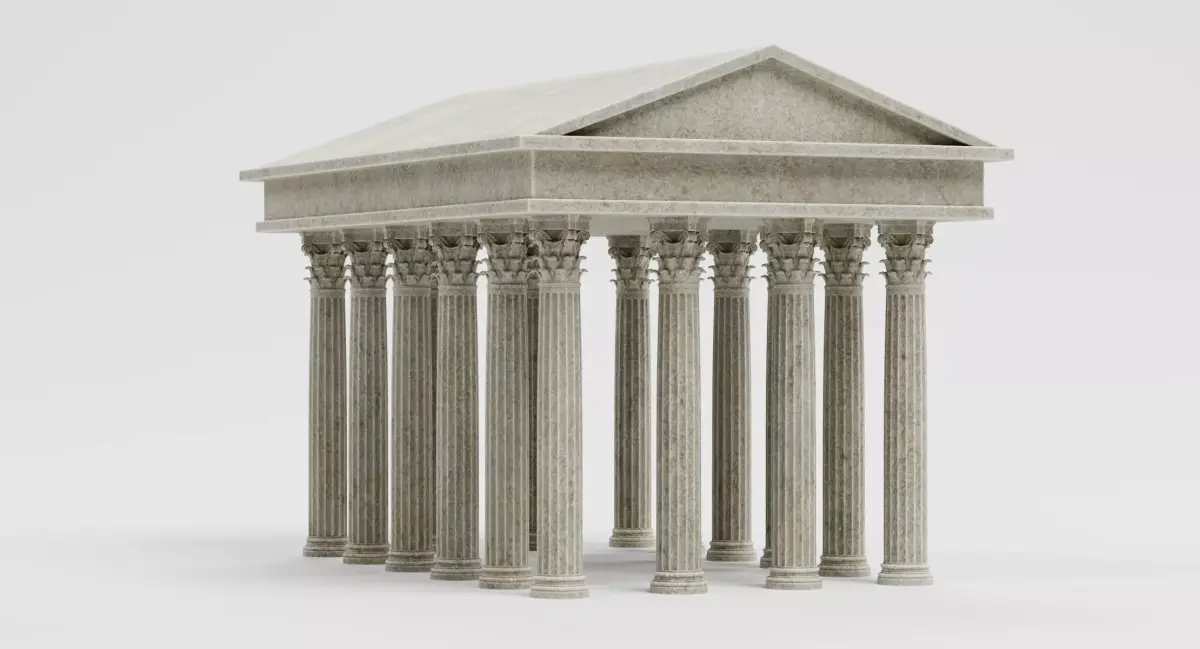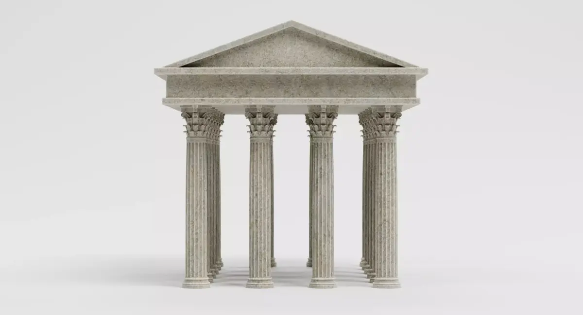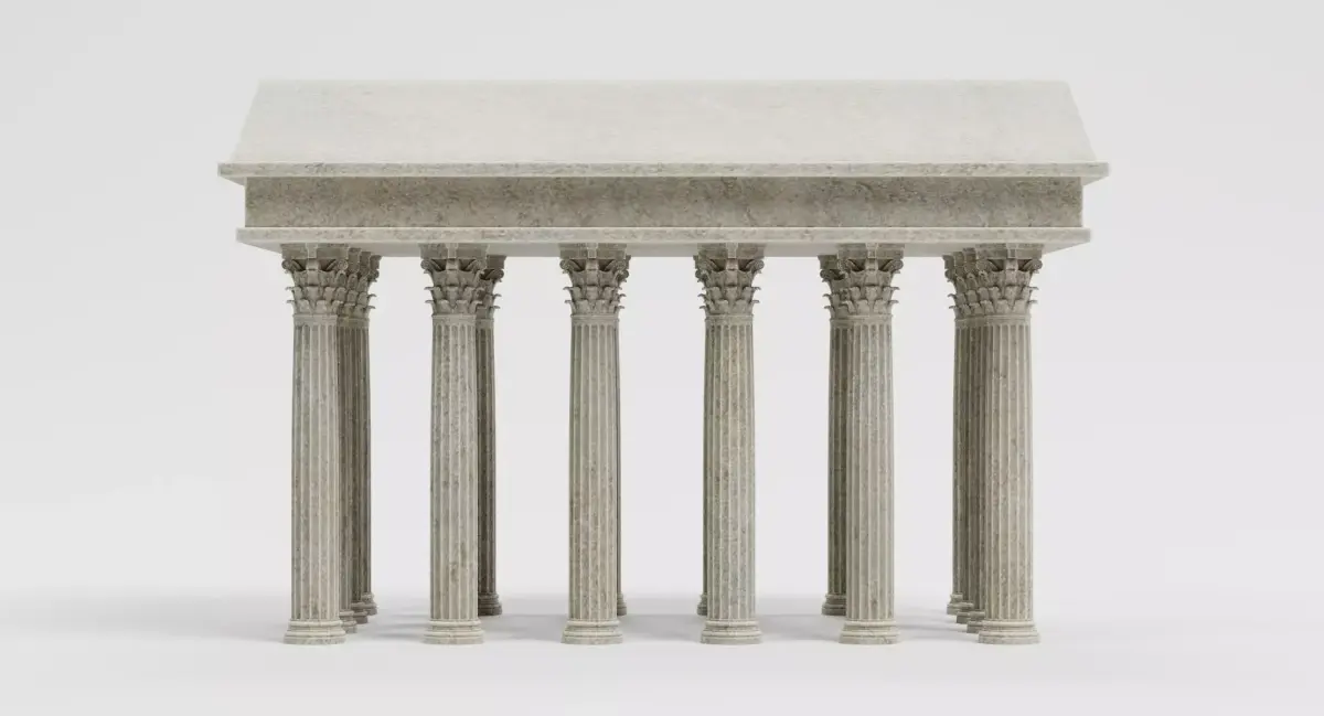 This Corinthian temple represents the peak of classical luxury through the Corinthian order. It is defined by its highly ornate capitals adorned with stylized acanthus leaves, creating a rich visual complexity. This architectural model is designed for scenes requiring grandeur, power, and intricate detail. The aged, high-fidelity stone materials ensure the structure feels grounded and authentic, even in the most demanding close-up visualizations.