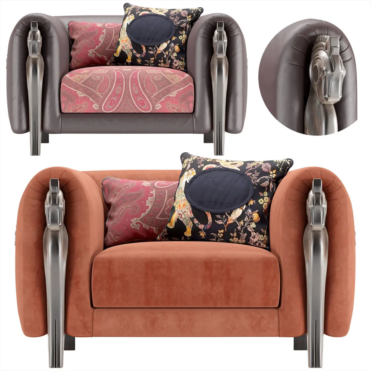 Corinto Armchair. Brand: Etro Home Interiors. Link: https://etrohomeinteriors.jumbogroup.it/en/products/corinto-1Dimensions:Width: 1250 mmHeight: 750 mmDepth: 1100 mmUnits: millimetersFormats: 3Ds Max 2012, 2015 (Vray), 3Ds Max 2013, 2015(Corona), OBJXForm:YesUnwrap uvw: YesTextures: YesMaterial library Corona, Vray: YesRender: Corona, VrayReady to renderImportant: import objects (except pillows) must be modified with the TurboSmooth modifier.Those who work in V-Ray versions lower than 3.1, be careful, in the materials in the BRDF section there is Microfaset GTR ( GGX ), if your version is older than 3.1, then the BRDF field will be empty. Choose Blinn, Phong or Ward - whatever suits you best." If the CORONA version is higher than 1.4: “For Corona render, it is recommended to set the version to at least 1.5, since the glossiness of materials is adjusted with PBR in mind.