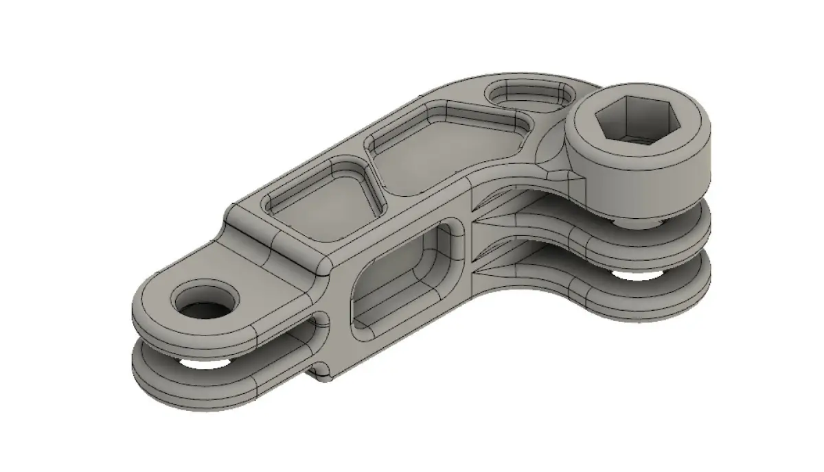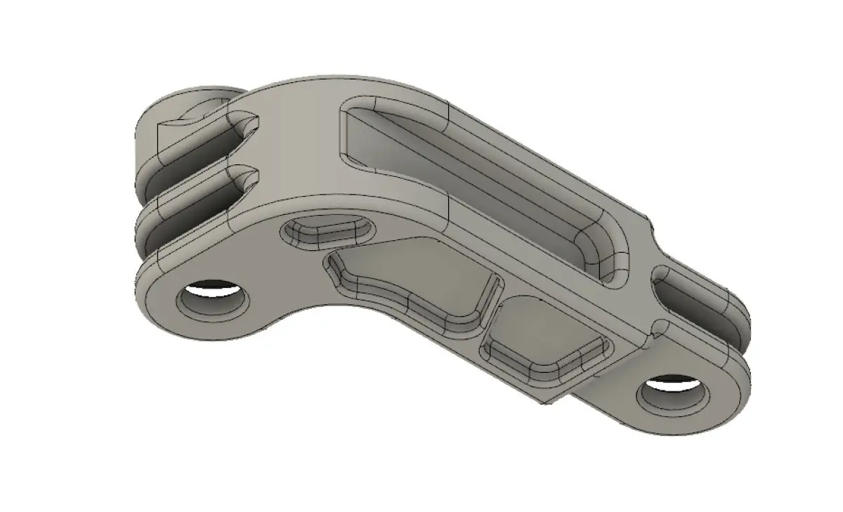Extension with standard GoPro connection with center distance between holes of 45 mm.Lightened and connected at critical points.The deformable point is near the pair of fins (not certified).