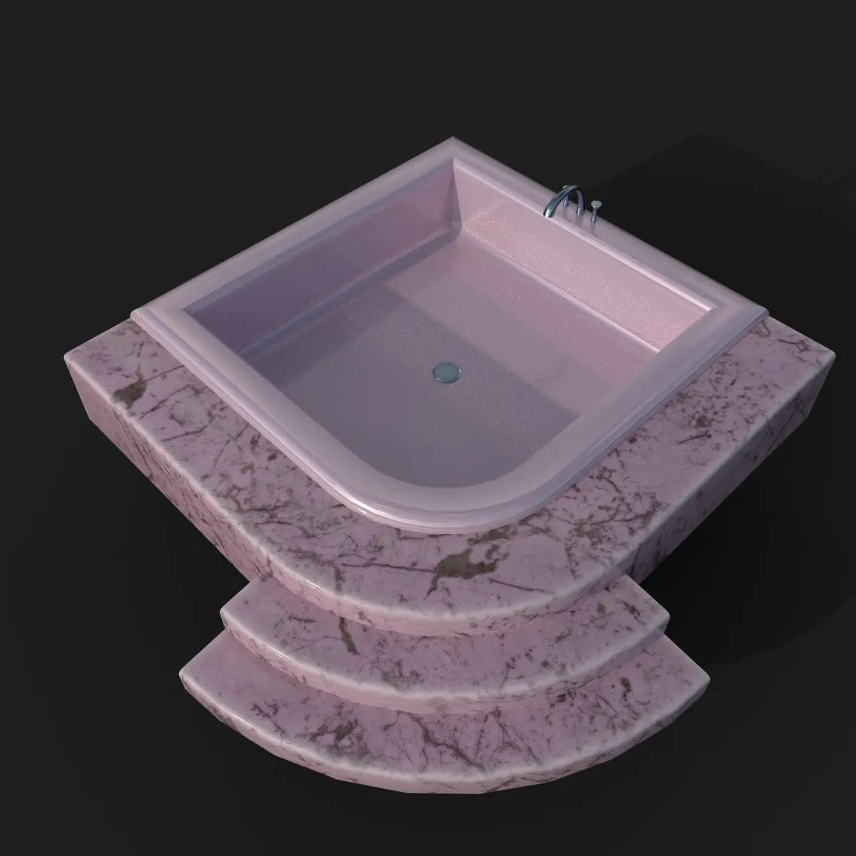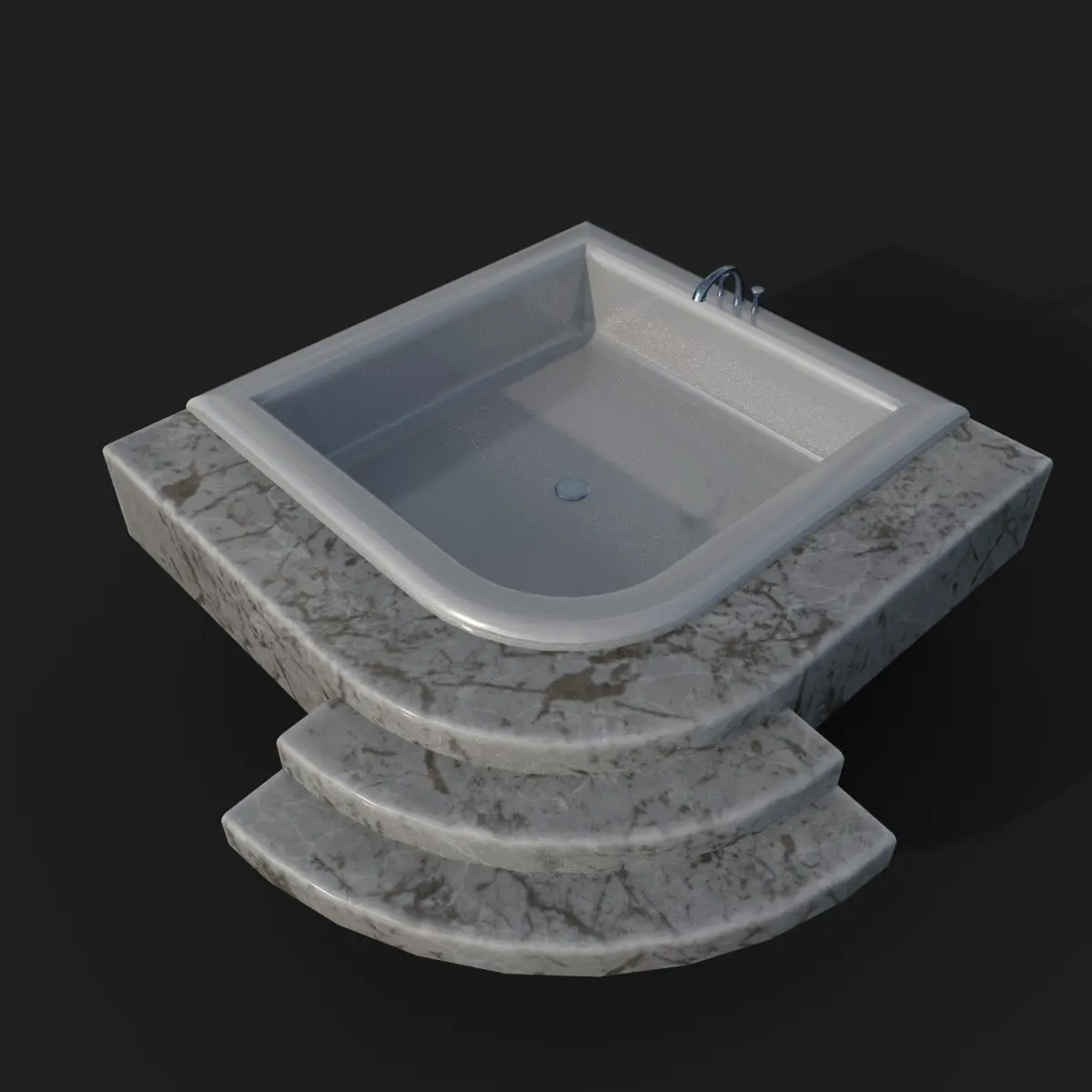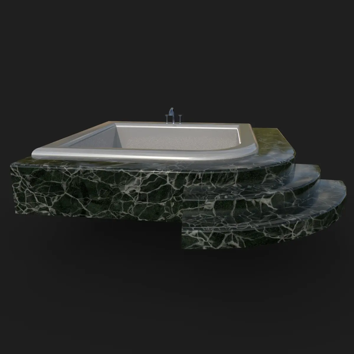 This 3D low-poly model showcases a luxurious marble bathtub with curved steps. Featuring a glossy black-and-white marble texture and metallic faucet fixtures, it's ideal for architectural visualization or game environments focused on interior design realism. Contains one 2k texture, normals directx, mesh triangulated. Contains substance painter file to adjust the colors.