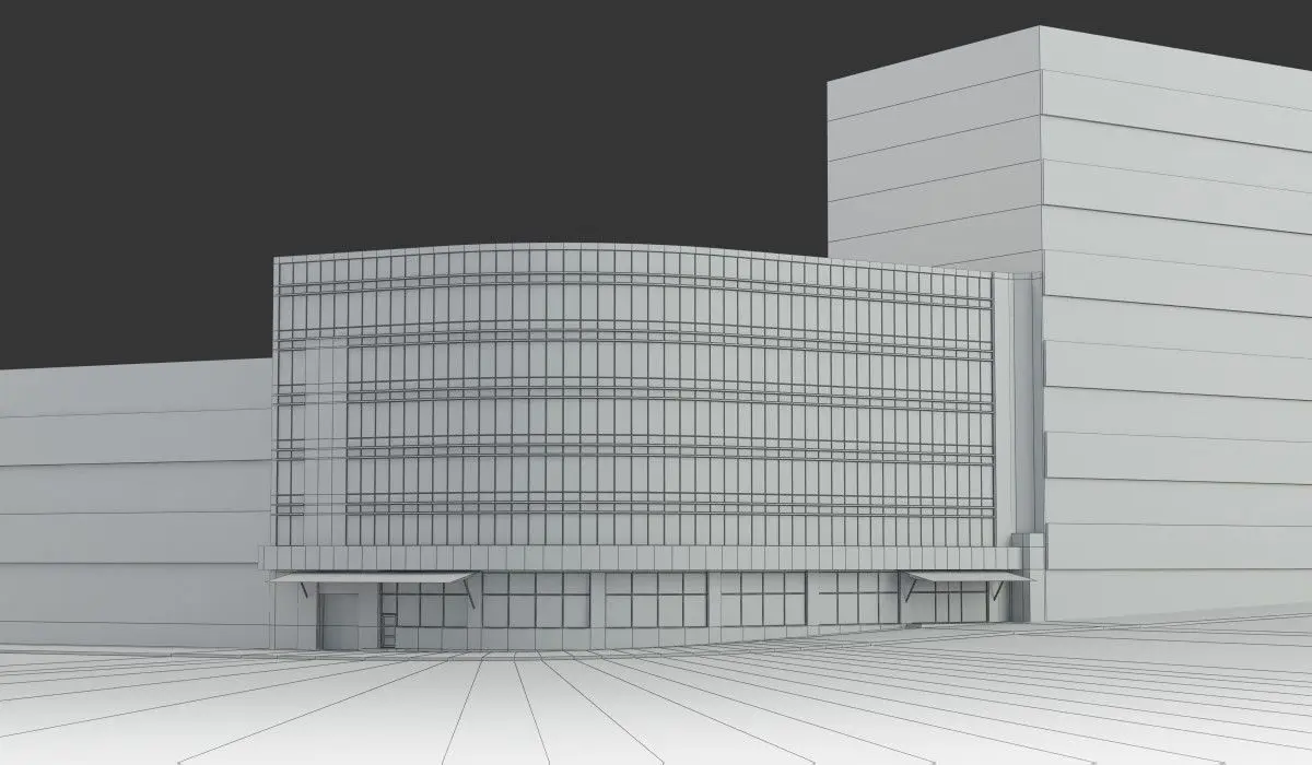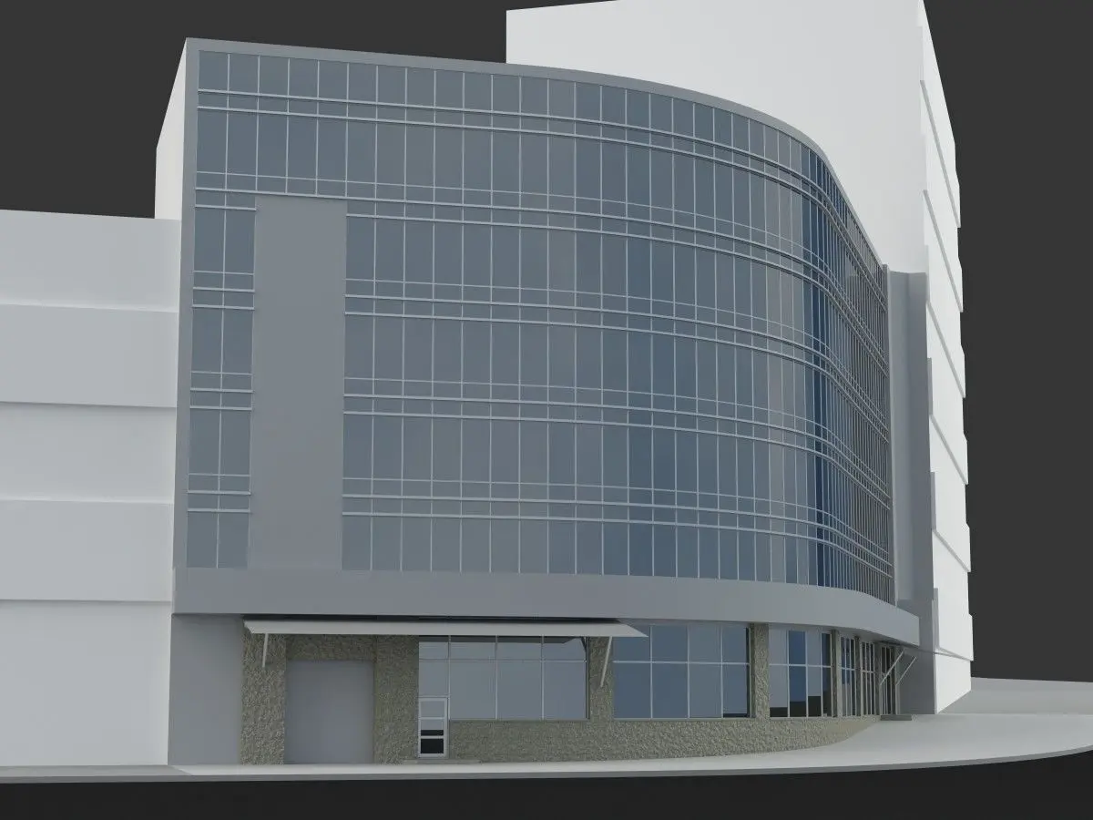 The scene in 3ds max format contains the model of the main building, sidewalk and adjacent houses. The main model contains materials and is ready to render.