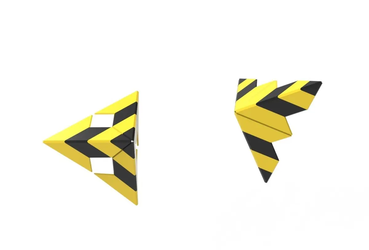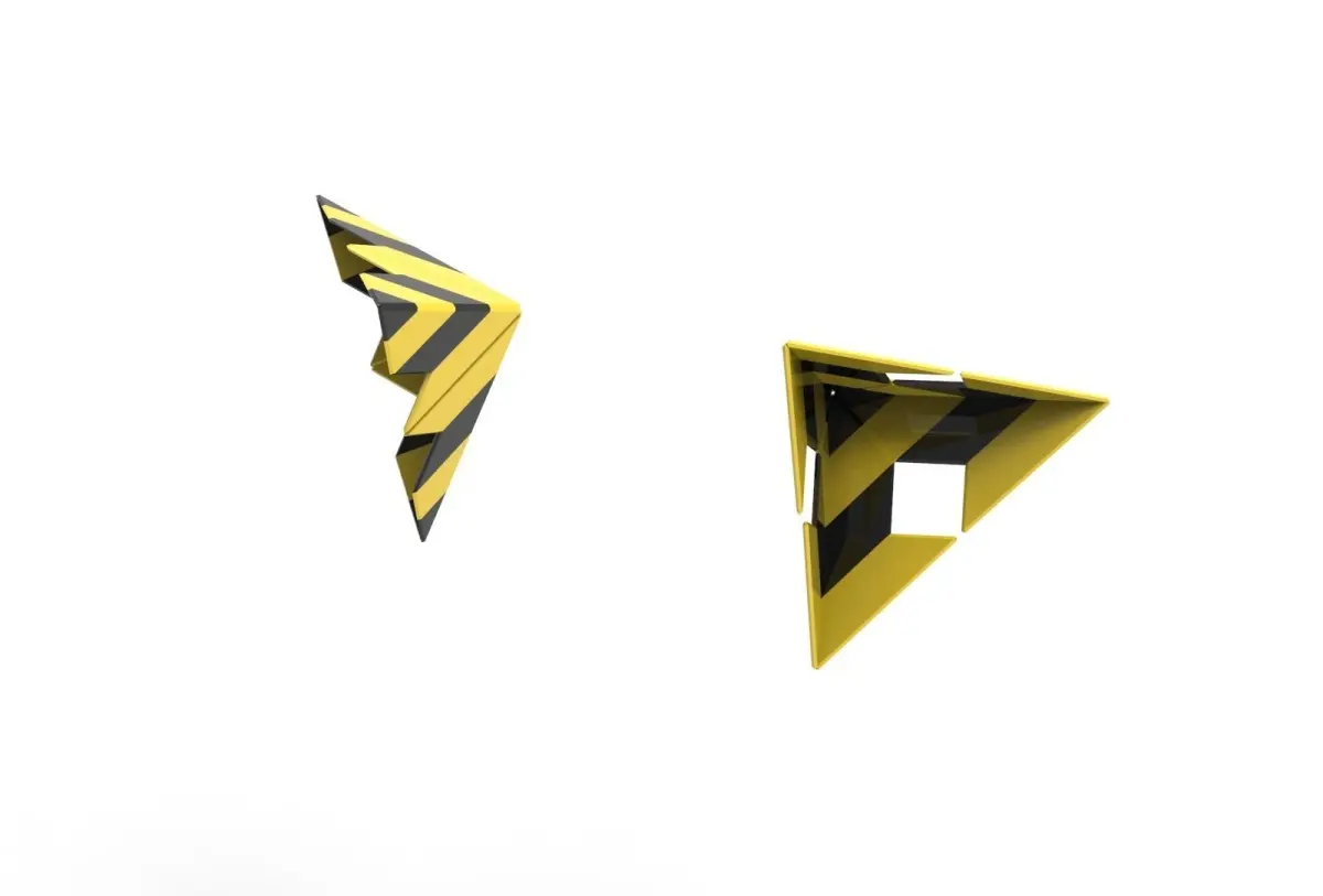 This is a corner protector, this form made from a single modular part that look like an arrow, the edges have proportionally relation to each other so you can make many patterns with this single arrow.the original length is 200 mm, and the thickness is 4 mm, you can rescale it to1/4. but if you need any specific dimension, feel free to contact me.print this object with TPU filament or some other material like this and make your home safe.