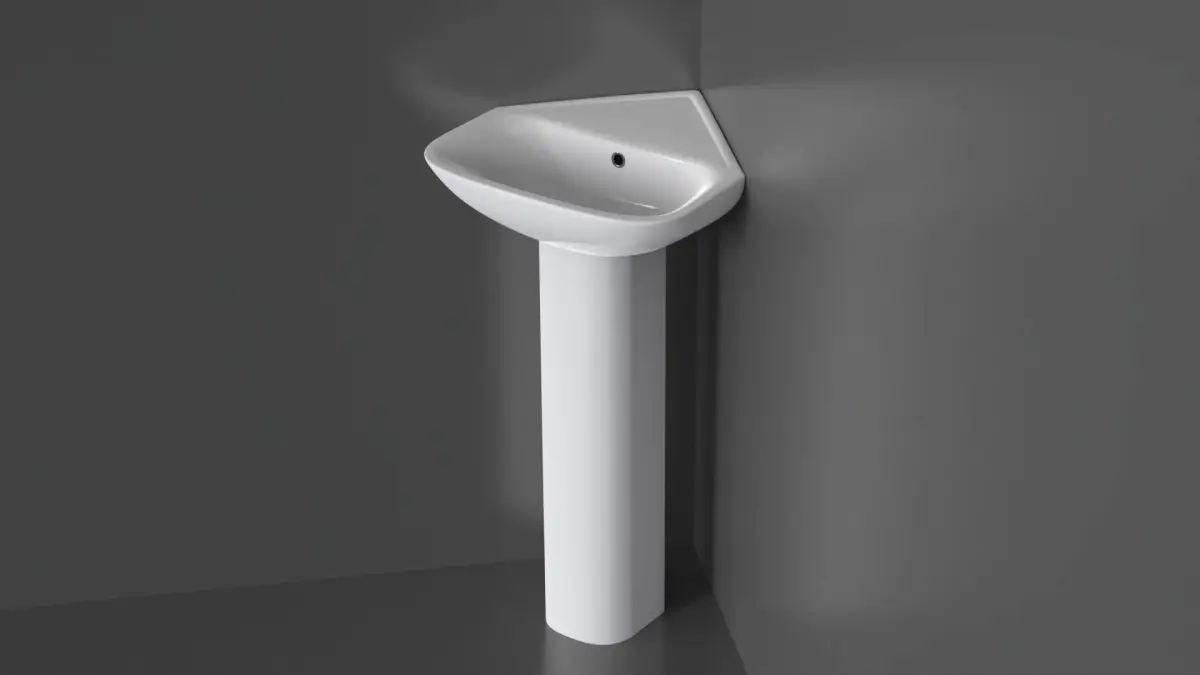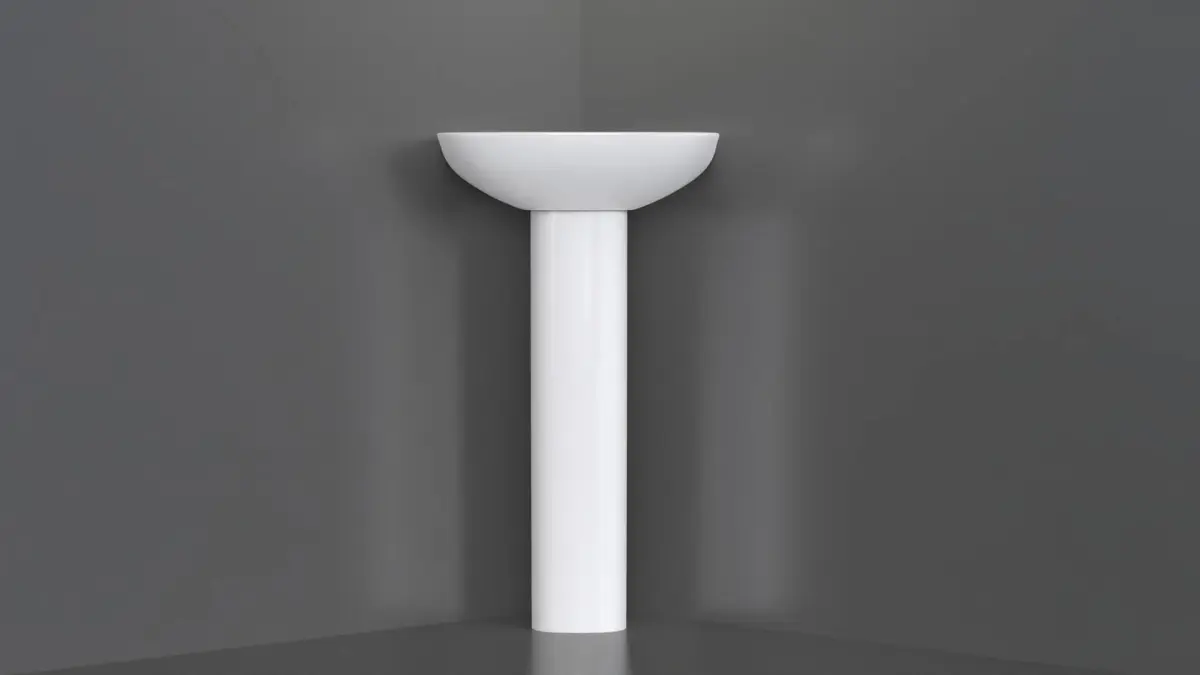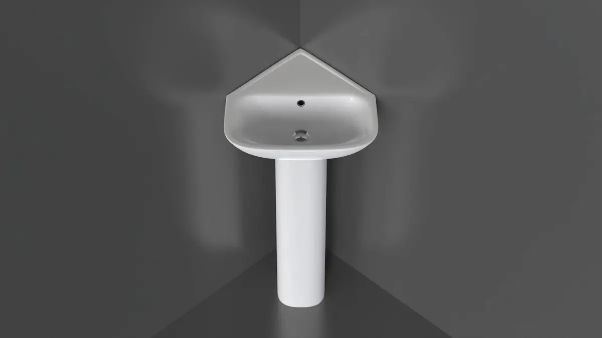 Highly detailed floor-mounted pedestal corner sink. Modeled in 3ds Max and rendered using KeyShot render engine (although the textures from any render engine can easily be applied).