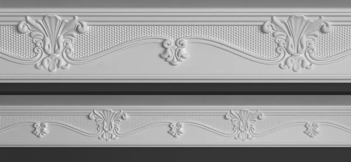 This subdivision-ready polygon mesh 3D model consist of 3 modular pieces: a center, inner corner and outer corner that can be combined seamlessly.Model size is 108 mm (4,25 inches) height. Modules size can be seen in the mesh preview images.Model saved in OBJ format as a separete 3D files: Cornice_005_Center, Cornice_005_Inner, Cornice_005_Outer.Model saved in LWO format (LightWave3D 2015) consist all modular pieces as separate layers. Filename is Cornice_005.lwo This format also contains parts for easy elements selection.Model contains quads polygons only, with good and clean topology and can be subdivided for hi res rendering, or used as is, for background elements.Polygon and vertices count shown in detail section is the sum of all 3 modules.Cornice_005_Center module contains 11032 polygons and 15059 verticesCornice_005_Inner module contains 20266 polygons and 27444 vertices. (Can be easyly reduced by one segment from each side for shortening corner size).Cornice_005_Outer module contains 20522 polygons and 27794 vertices. (Can also be easyly reduced by one segment from each side for shortening corner size).Model is NOT suitable for 3D printing.